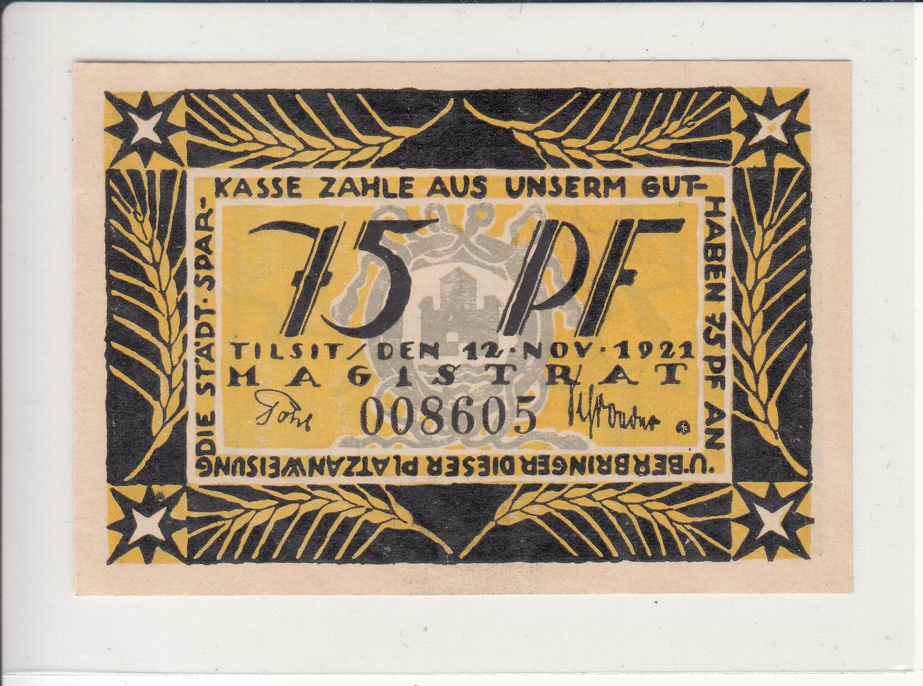 Tilžė_75 feningai_1921m_unc_nuo 1€!
