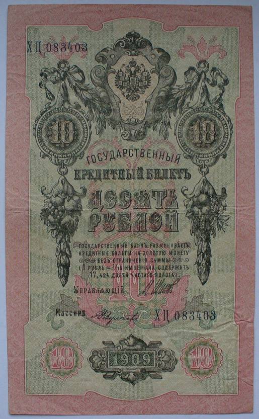 Rusija 1909 10 RUBLIŲ P11c(14)......5419