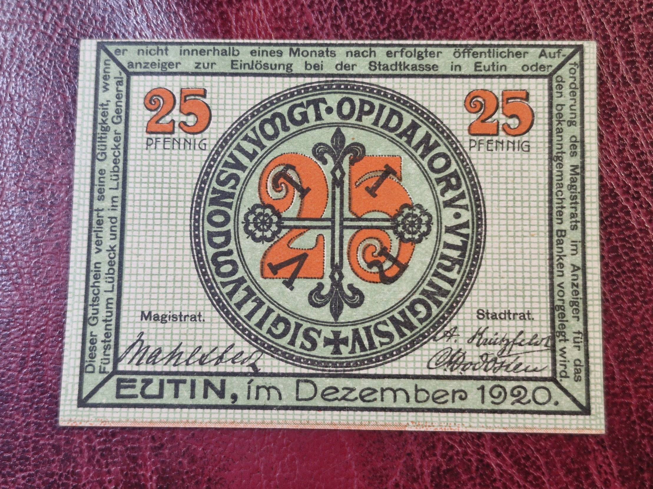 25 Pfennig 1920.12 Eutin Notgeld Vokietija