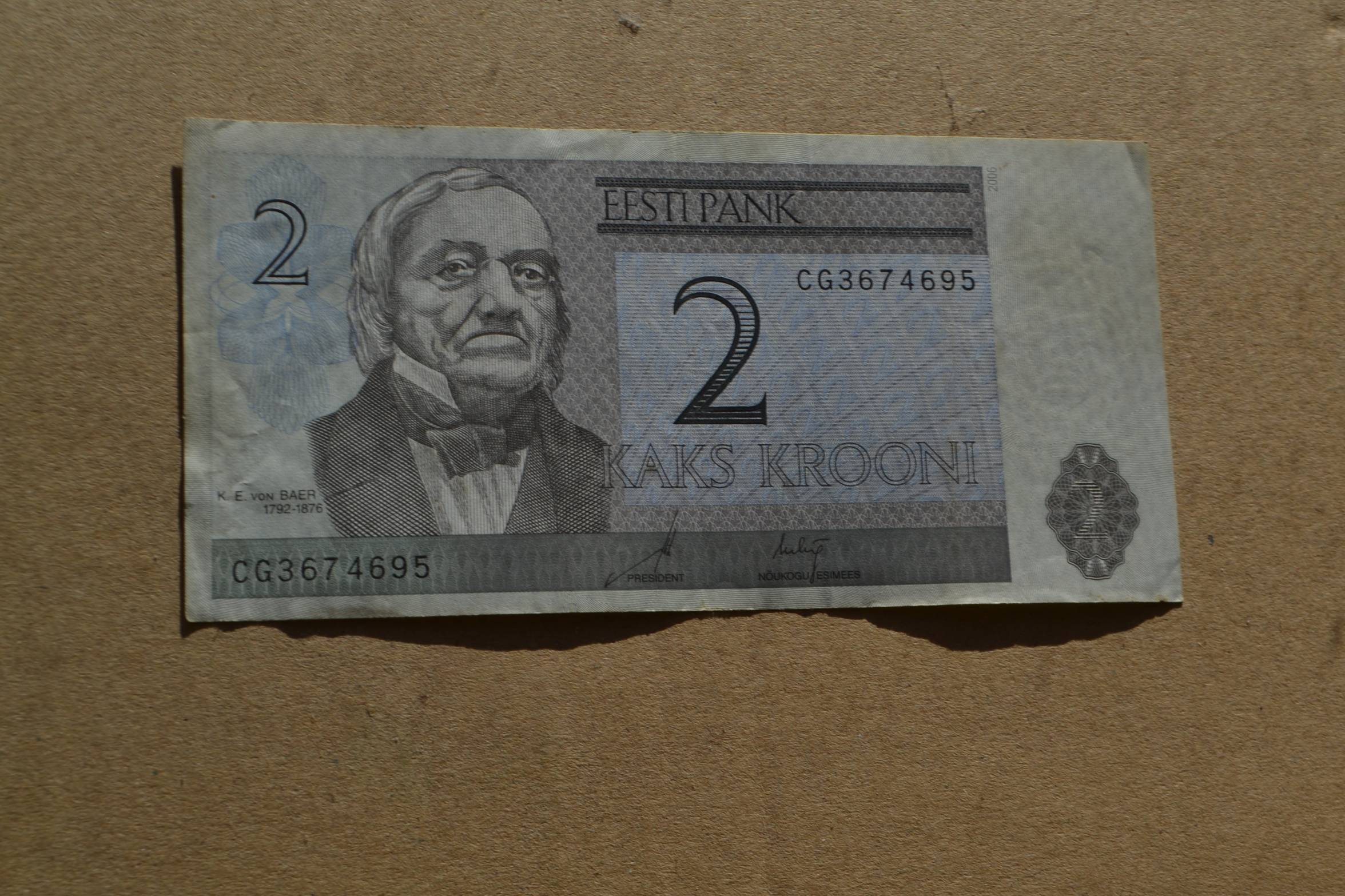 2 Estijos kronos 1992 m.,nuo 1 Euro