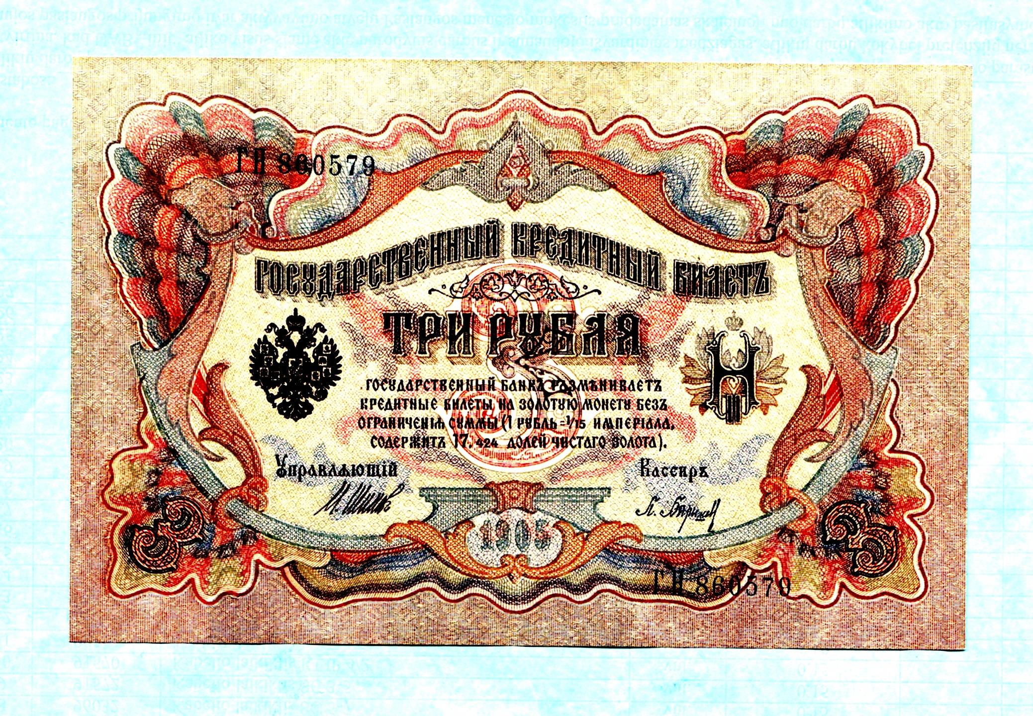 1905 Russia/Р.С.Ф.С.Р. Note 3 Rubles,P#9C/T2