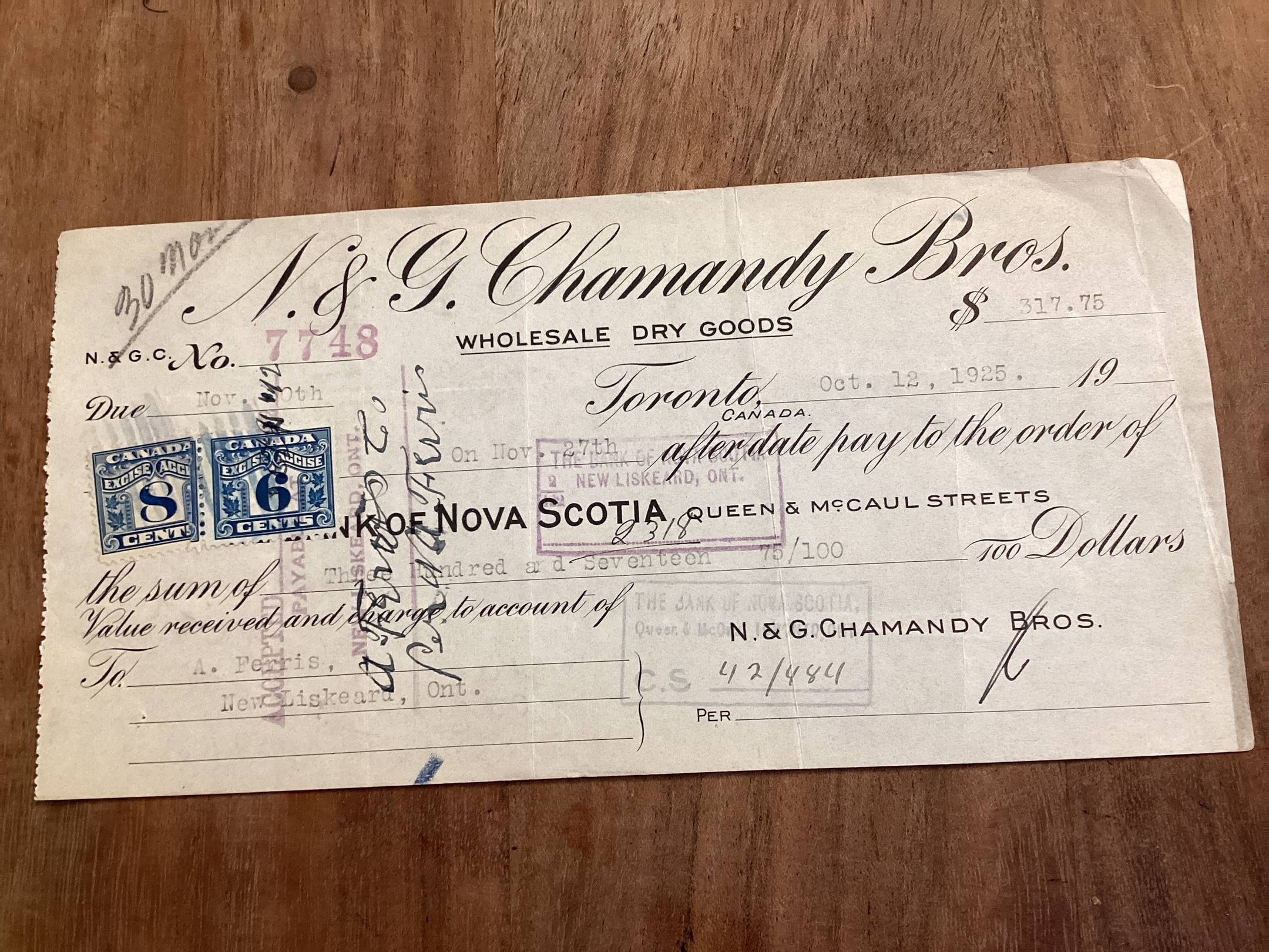Bankinis cekis Naujoji Skotija 1925