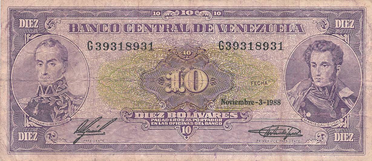 Venesuela - 1988 - 10 bolivaru - nuo euro