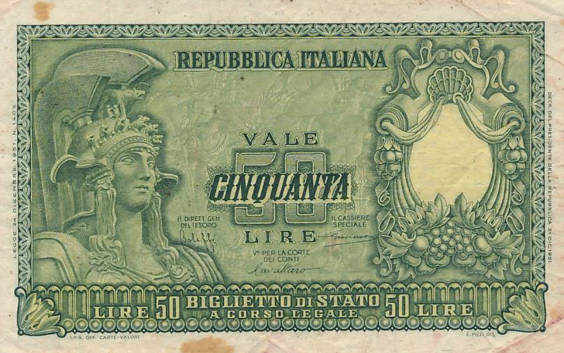 Italija - 1951 - 50 lyru - nuo euro