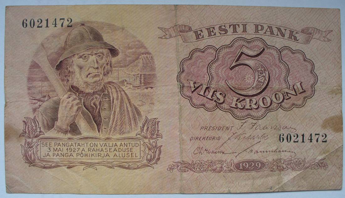 Estija 1929 5 KROONI P62.......5471