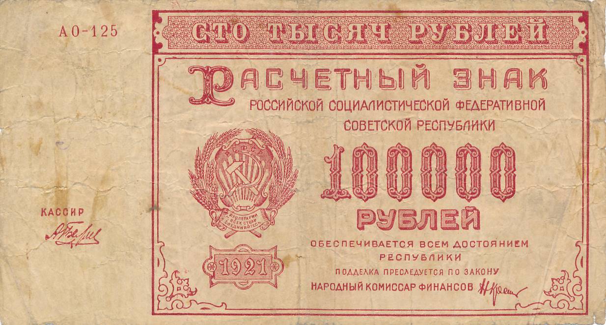 Rusija - 1921 - 100.000 rubliu - nuo euro