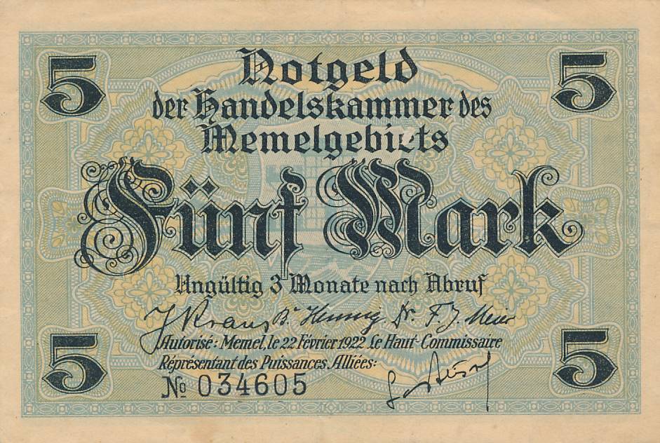 Klaipeda - Memel - 1922 - 5 markes - nuo euro