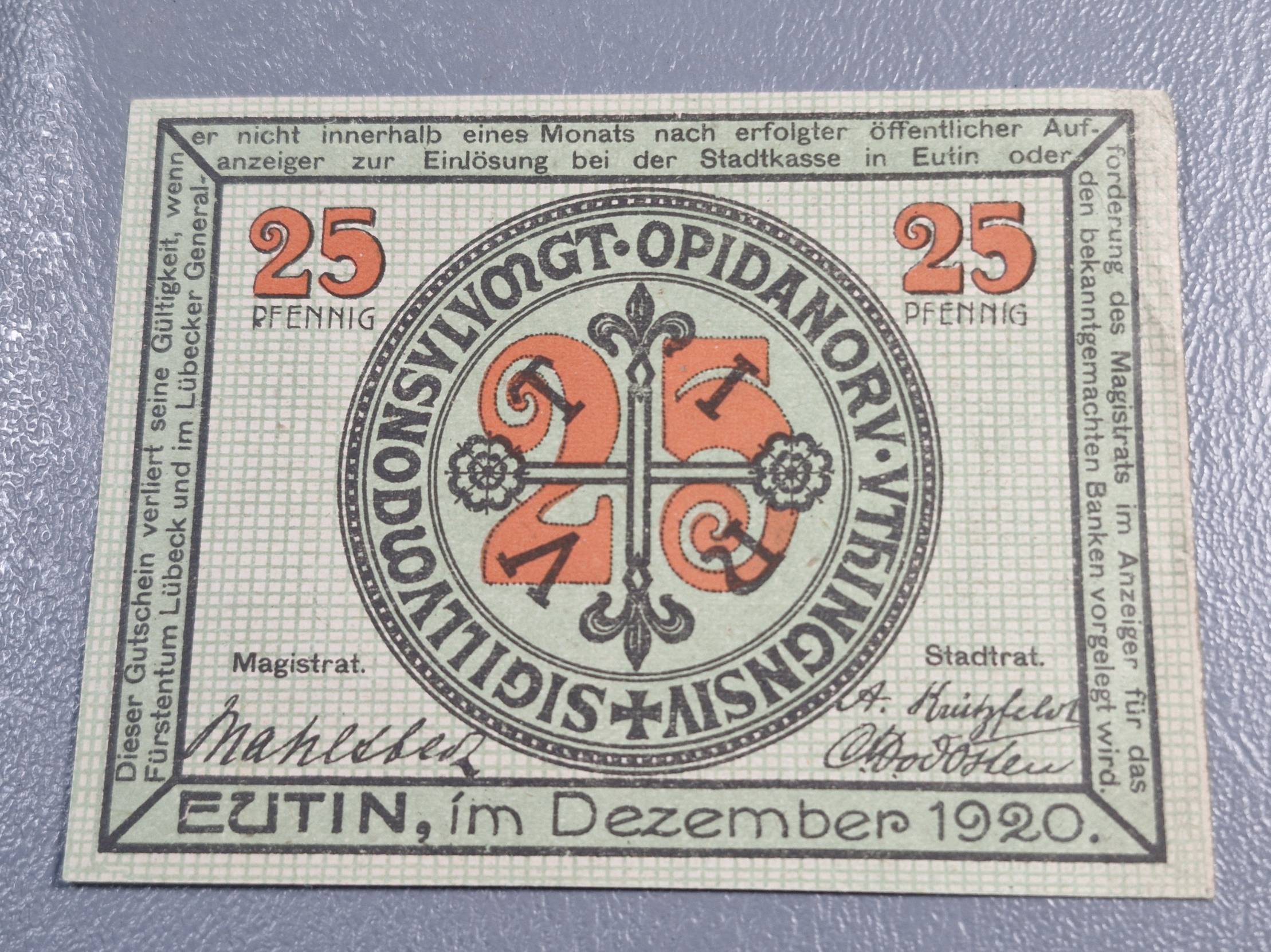 25 Pfennig 1920.12 Eutin Notgeld Vokietija
