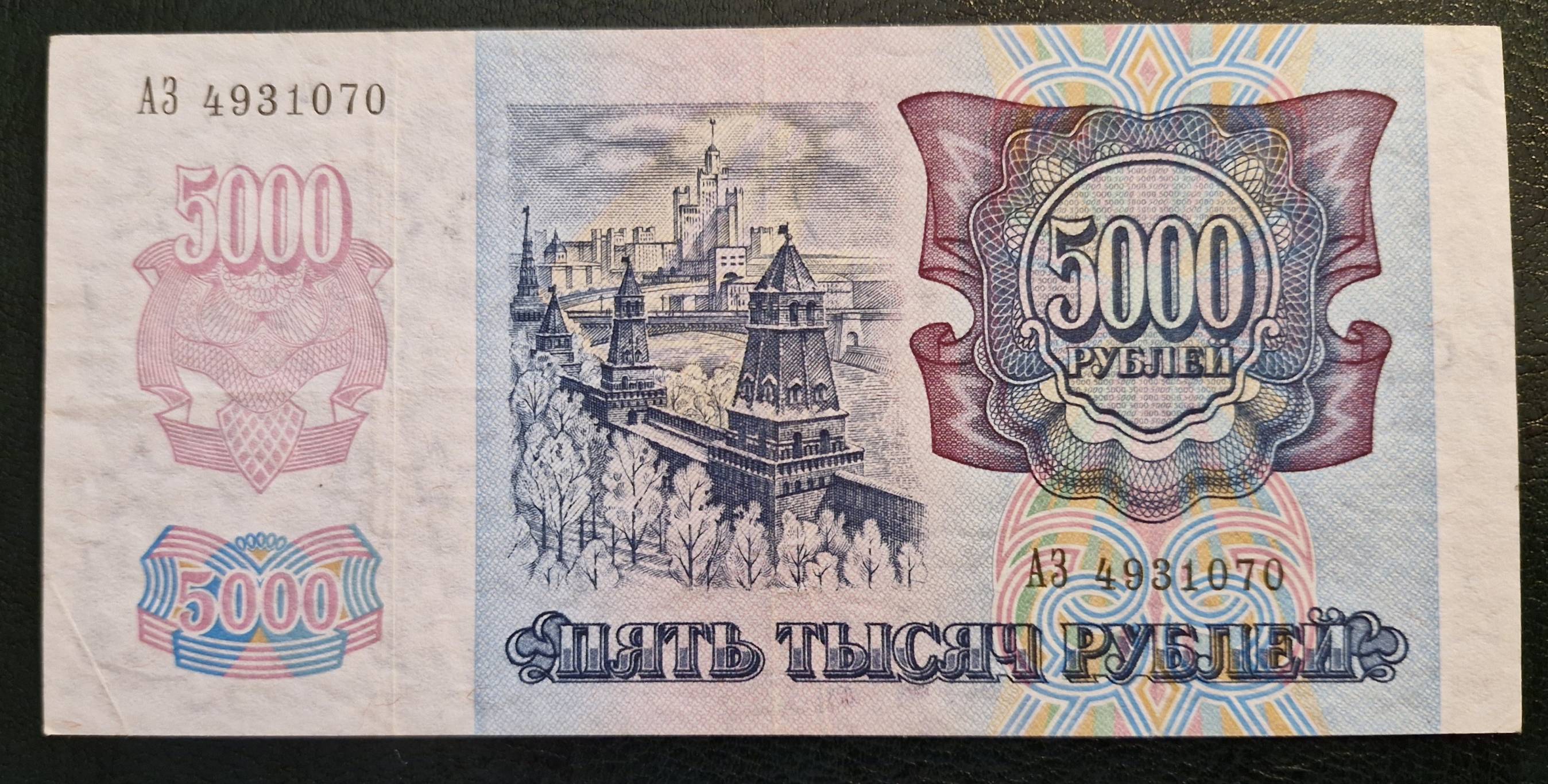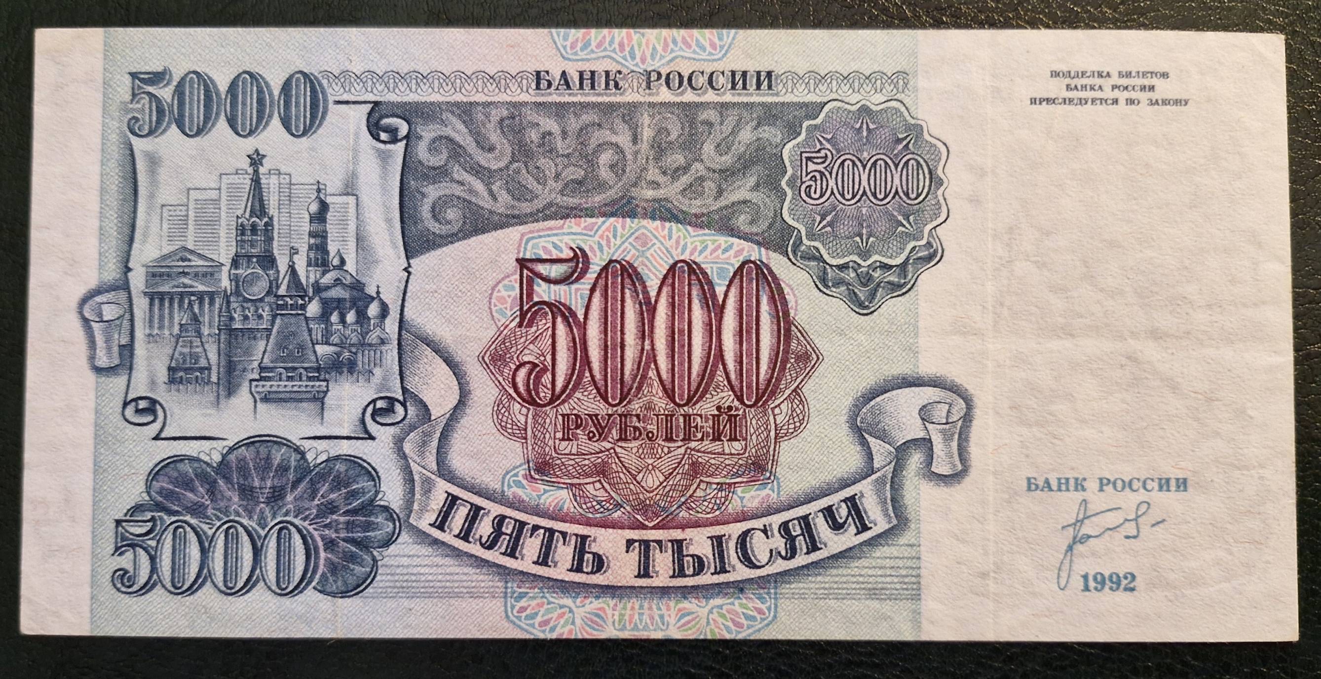 5000 rublių 1992 m. Rusija - Nuo 1 Eur
