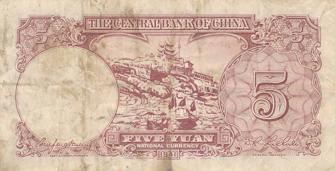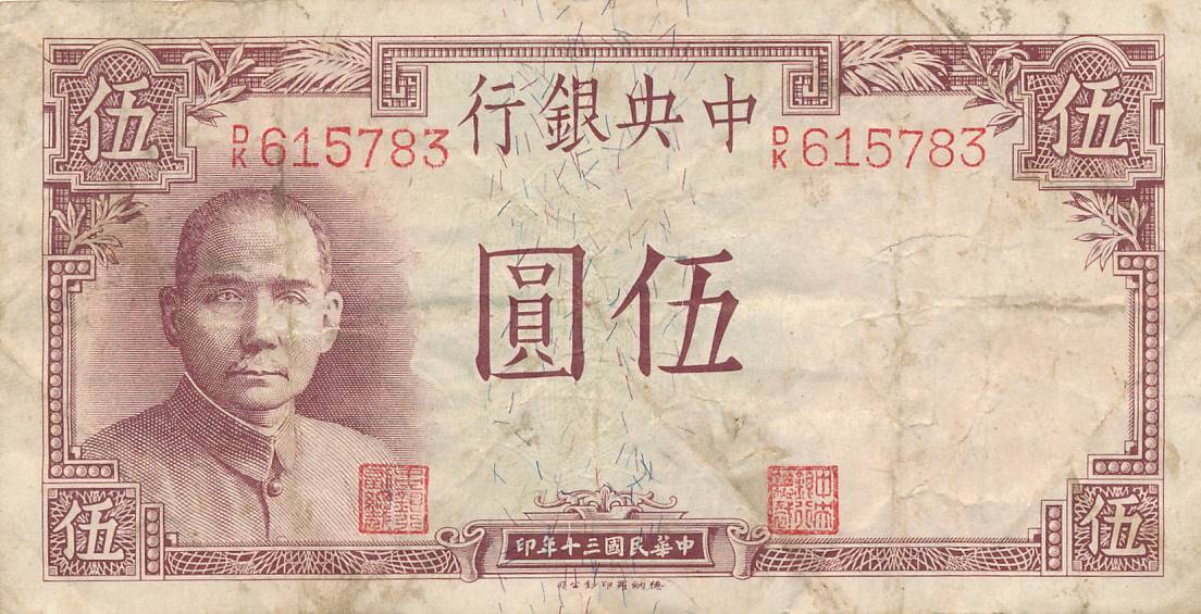 Kinija - 1941 - 5 juaniai - nuo euro