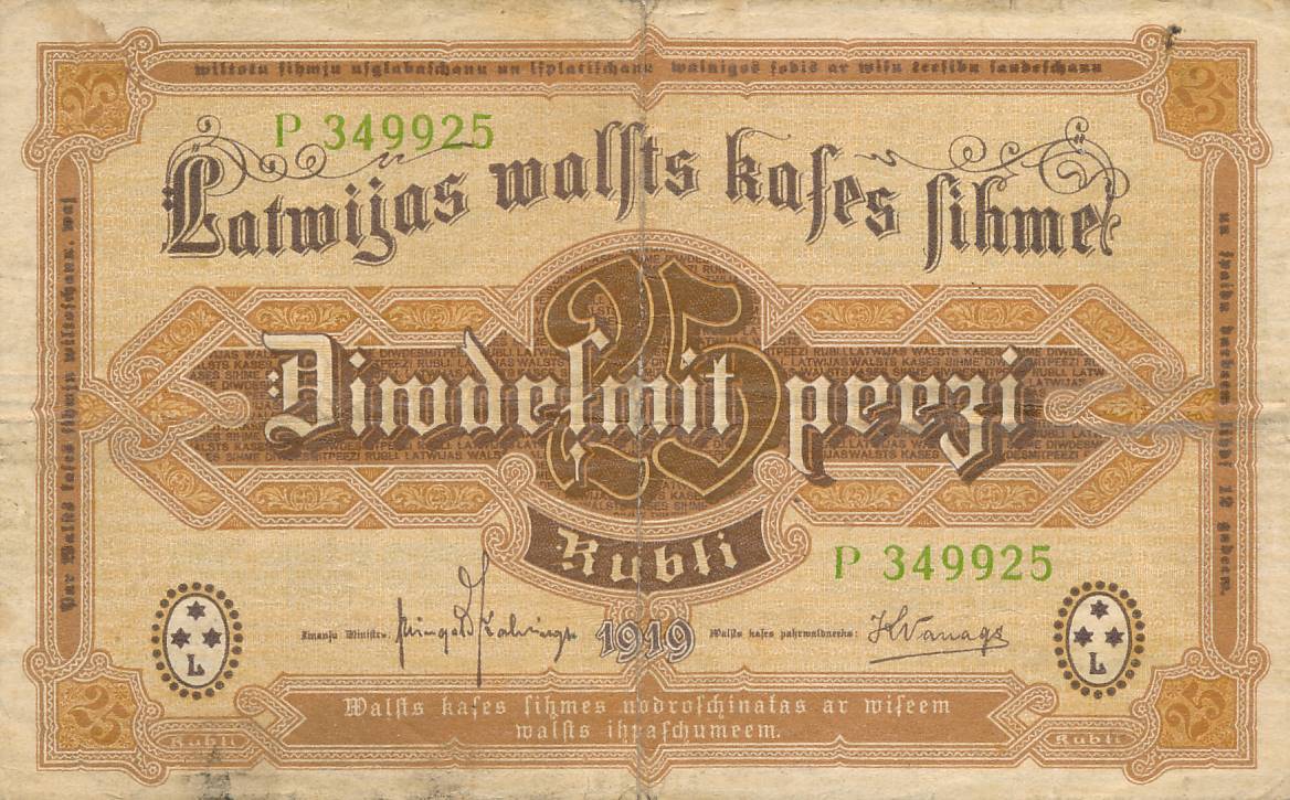 Latvija - 1919 - 25 rubliai - nuo euro