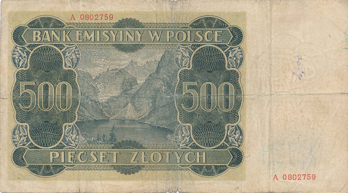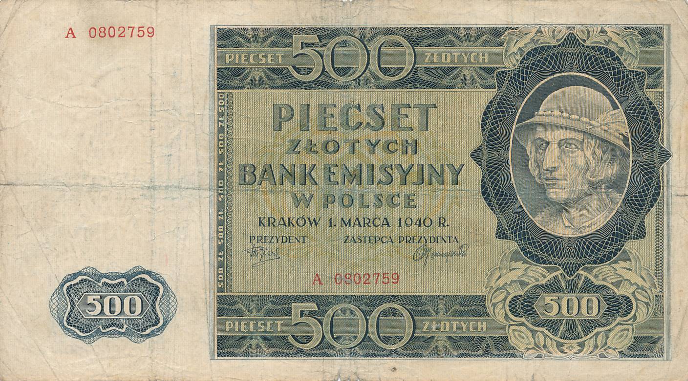 Lenkija - 1940 - 500 zlotu - nuo euro