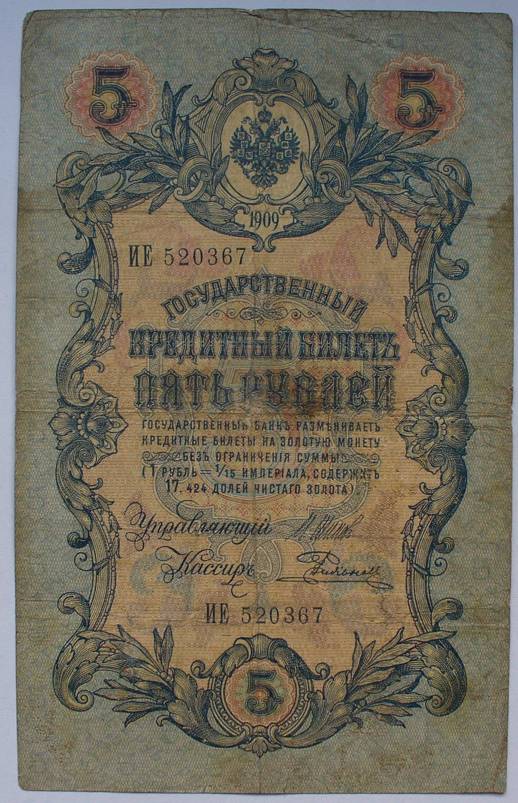 Rusija 1909 5 RUBLIAI P10b(11)....5519