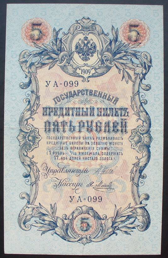 Rusija 1909 5 RUBLIAI P10b(8)....5520
