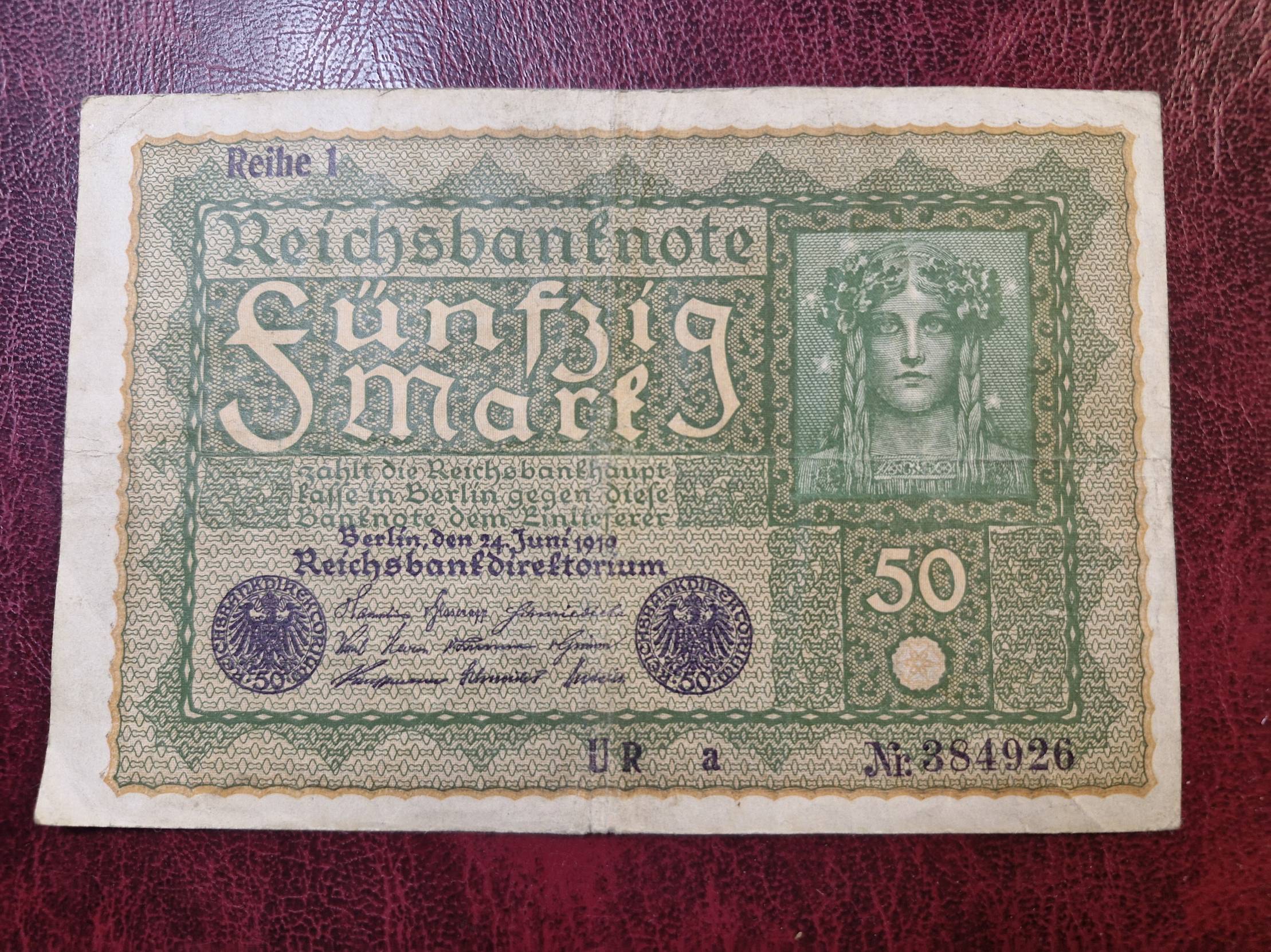 1919, Germany, reichsmark, 50