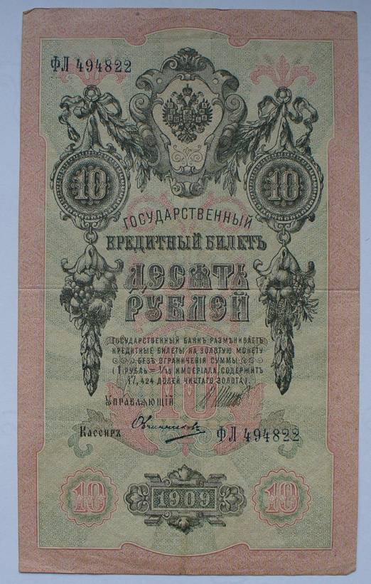 Rusija 1909 10 RUBLIŲ P11c(11).....5557
