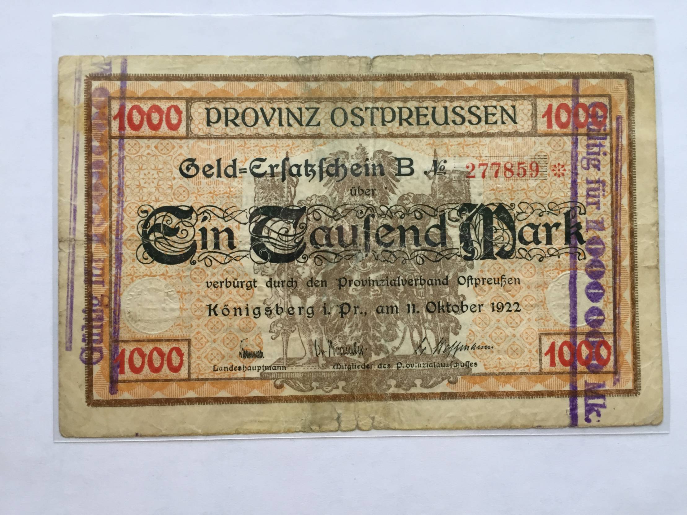 Karaliaučius 1000000 Mark 1922m. Nuo 1 euro