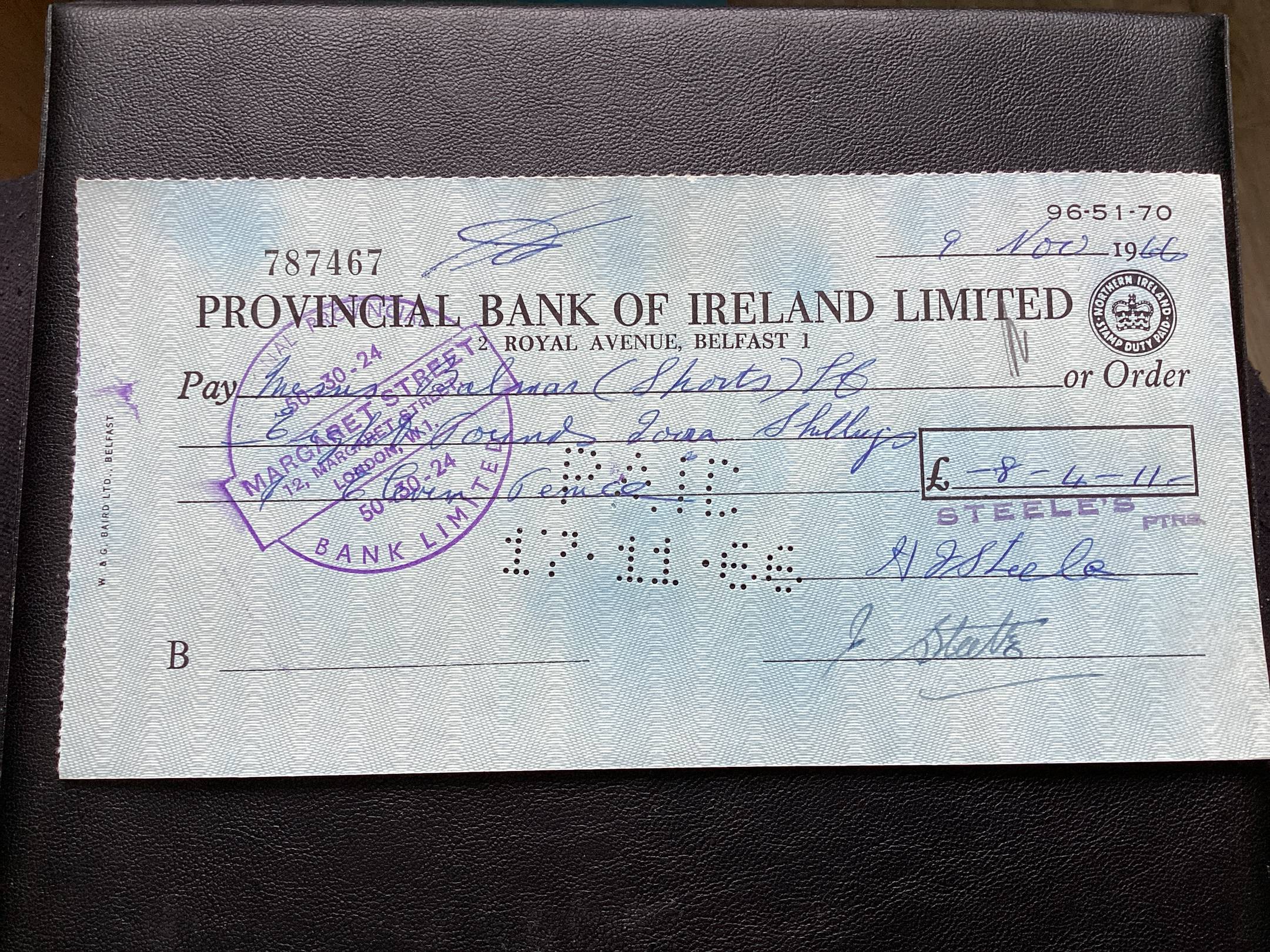 Bankinis cekis Airija. 1966-1-
