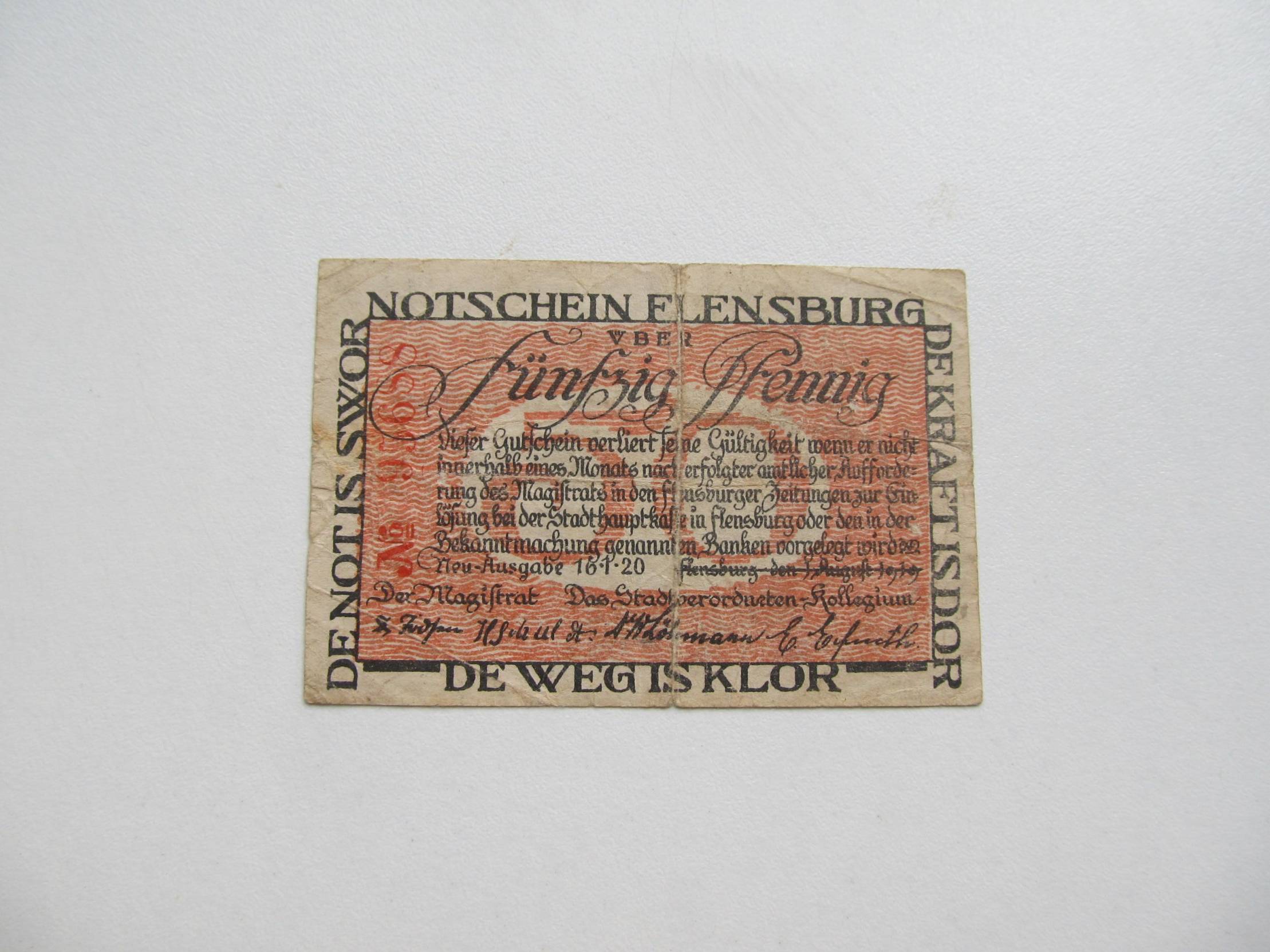 Notgeldas 50 pfenig , Flensburg Vokietija , 1920