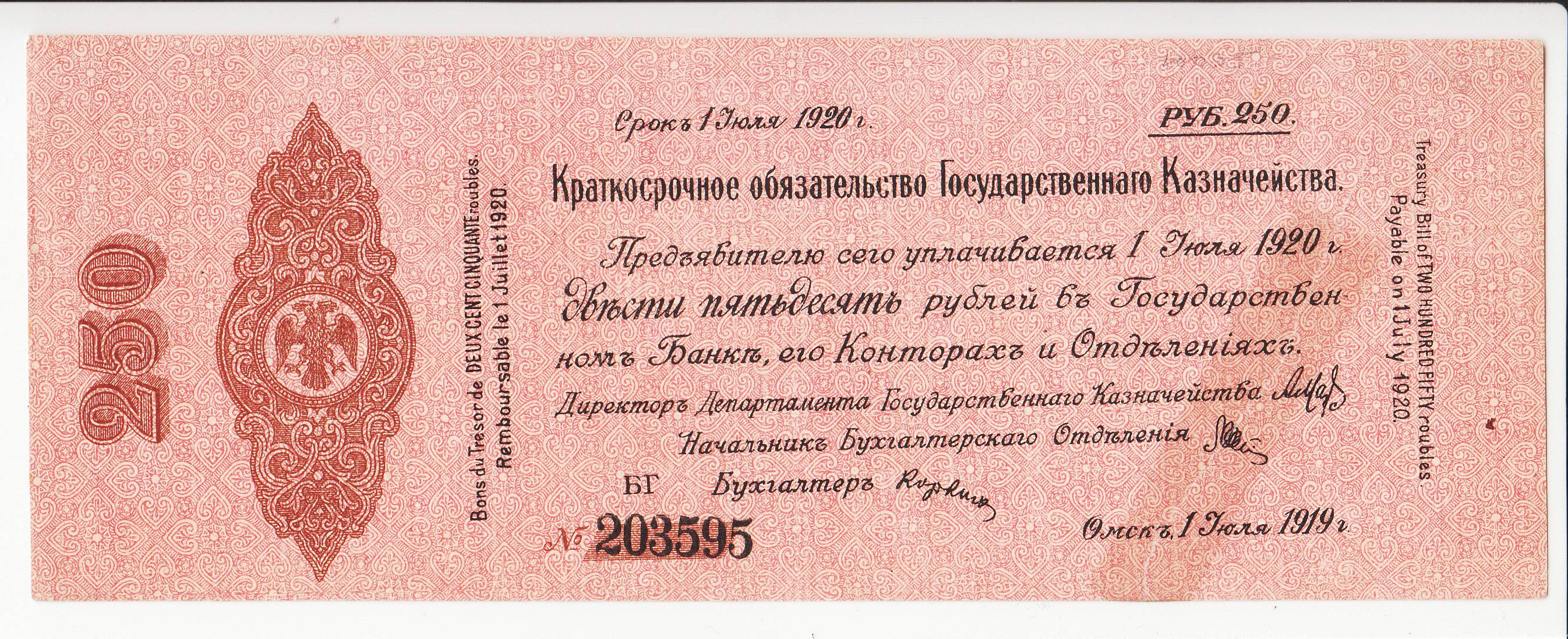 Rusija_250 rublių_1919m_ nuo 1€!