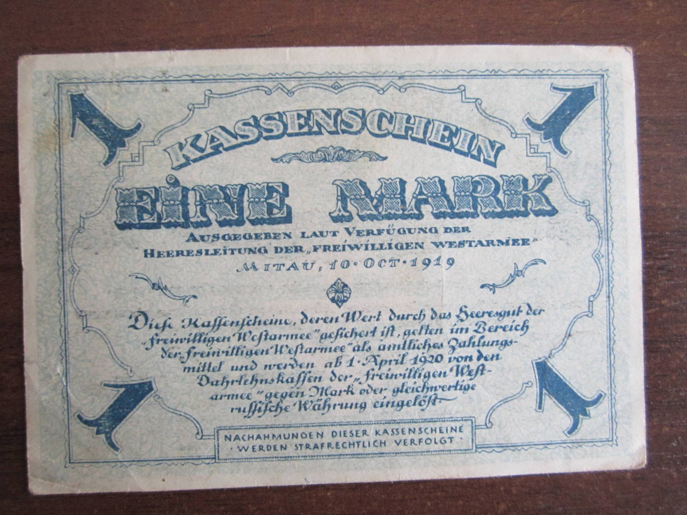 Rusija- Latvija, 1 Markė, 1919 m.