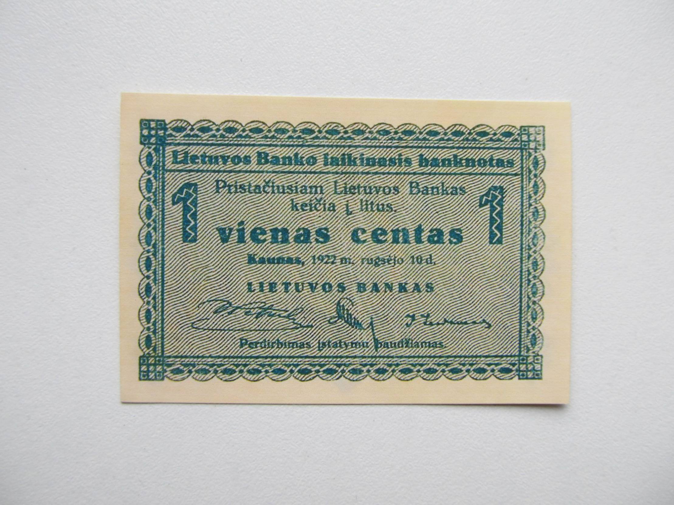 1 centas , Lietuva , 1922 rugsėjis