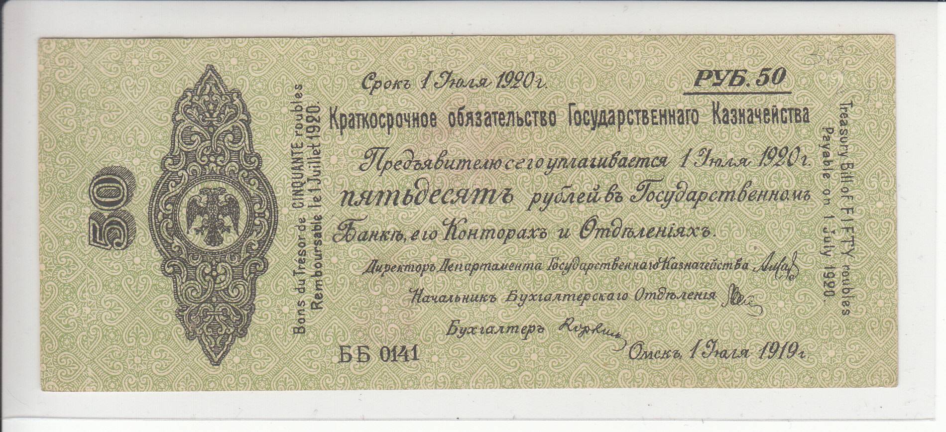 Rusija / Omskas_50 rublių_1919m_ nuo 1€ !