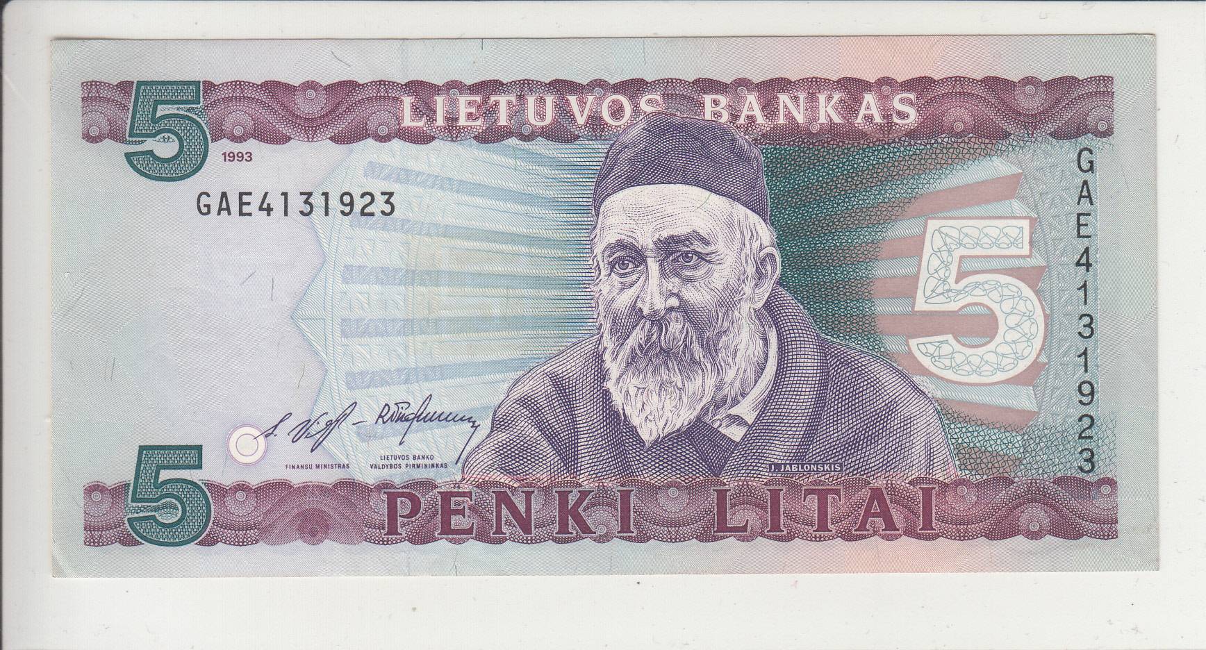Lietuva_5 litai_1993m_xf+_ nuo 1€ !