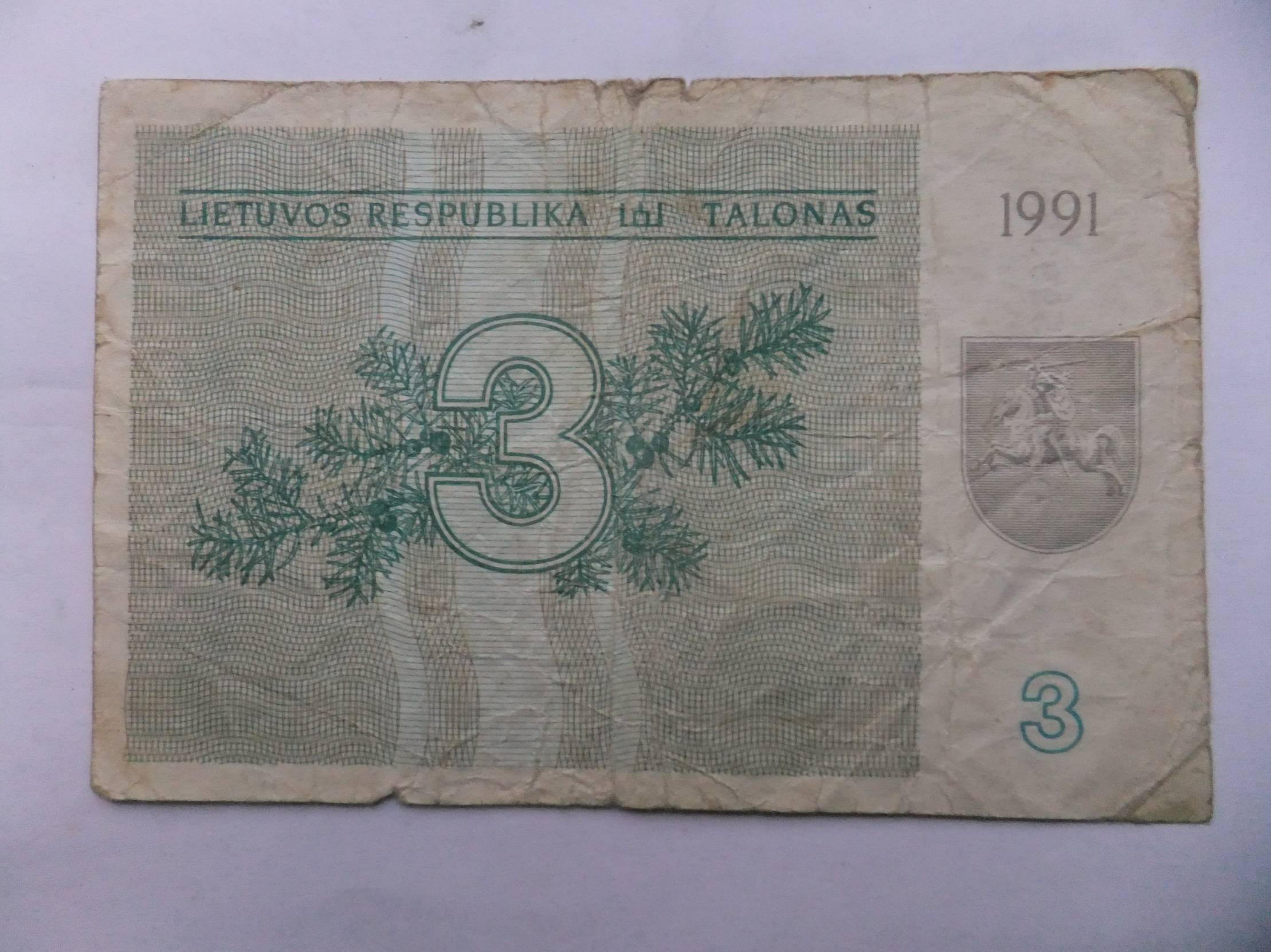 Lietuvos - 3talonai be užrašo 1991m. nuo 1e.