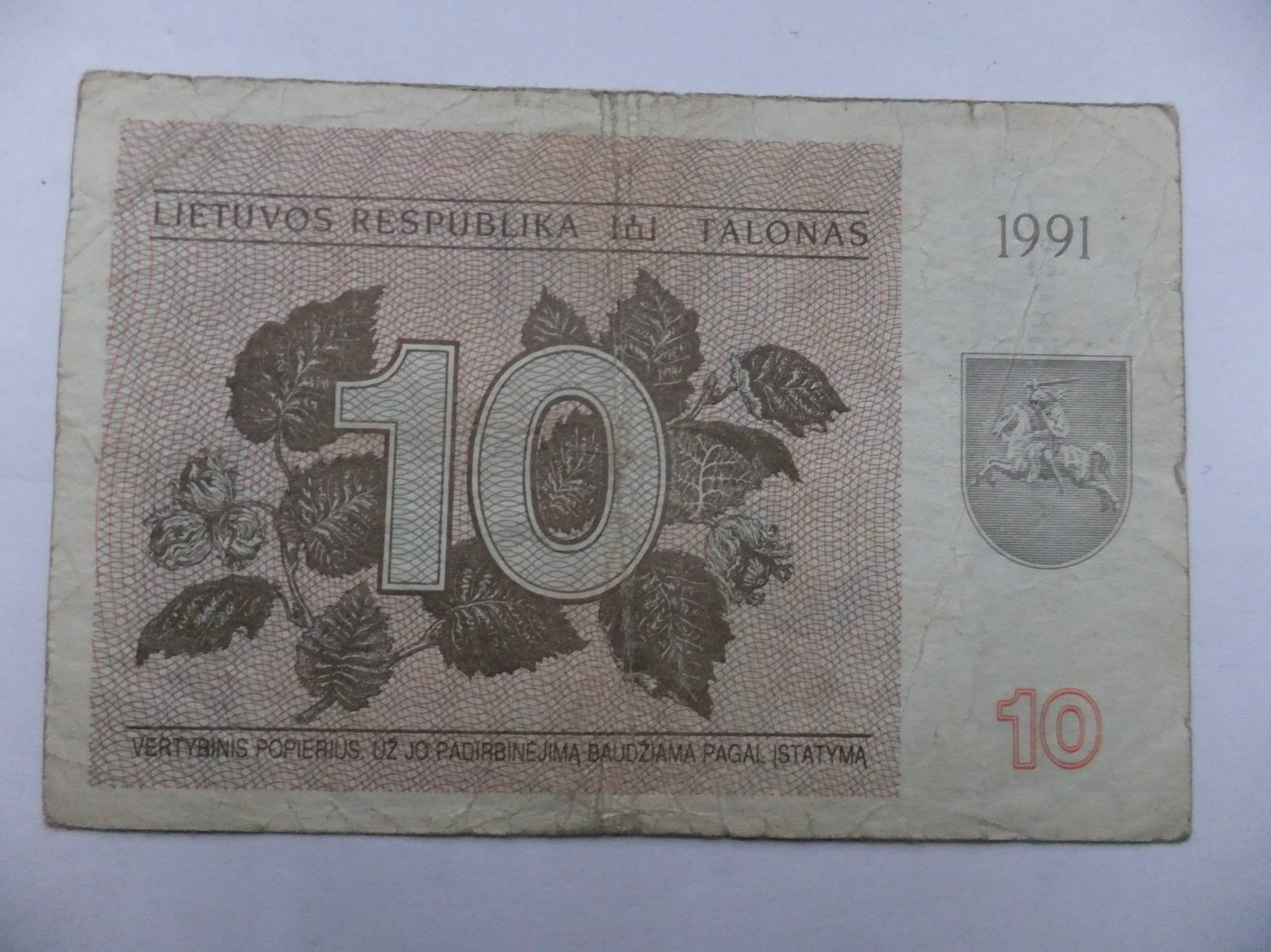 Lietuvos - 10talonu 1991m. nuo 1.5e.