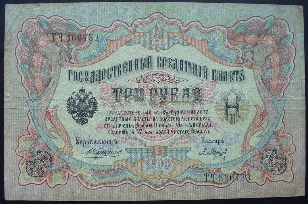 Rusija 1905 3 RUBLIAI P9b(2)......5615