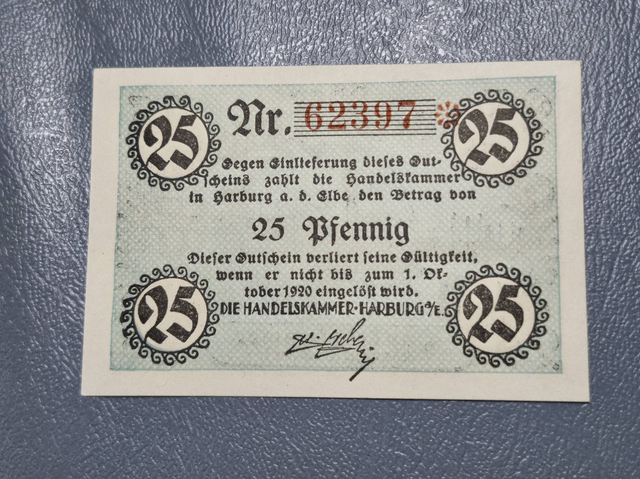 25 Pfennig 1920.10.01 Harburg Notgeld Vokietija