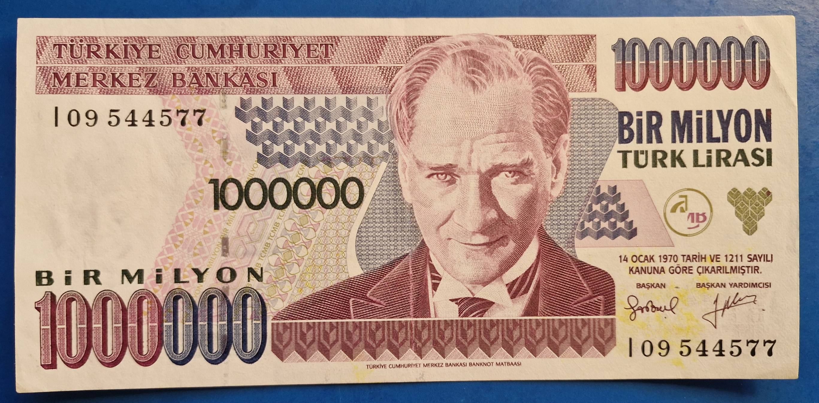 1000000 Lirų 1970 m. Turkija - Nuo 1 Eur