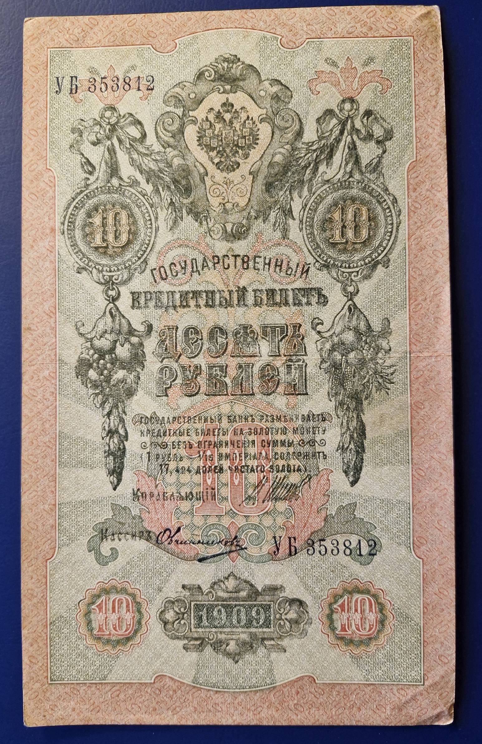 10 rublių 1909 m. Shipov Rusija - Nuo 1 Eur