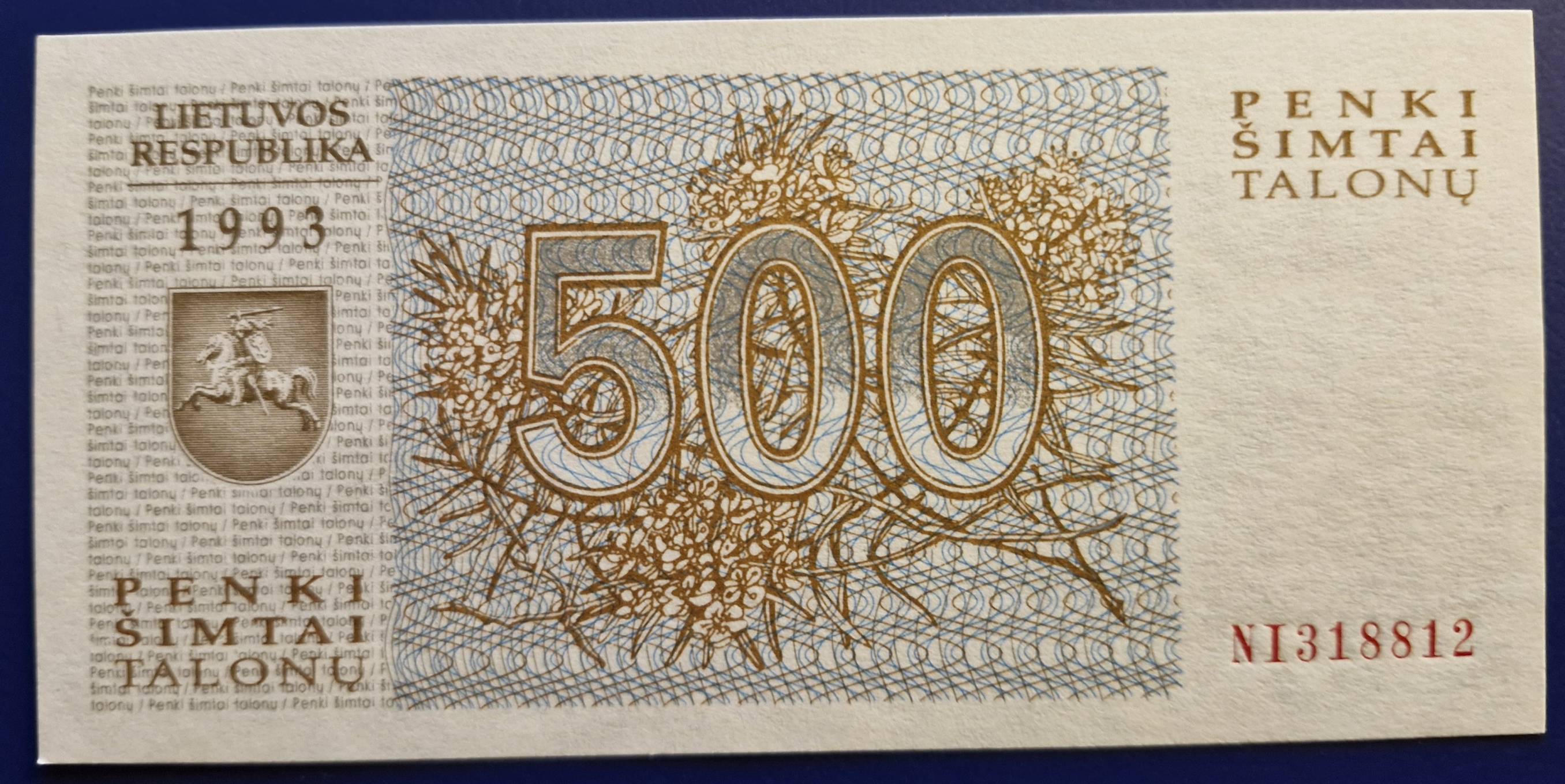 500 Talonų 1993 m. UNC Lietuva - Nuo 1 Eur
