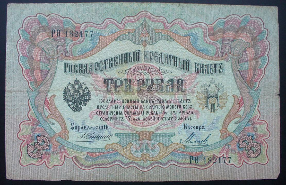 Rusija 1905 3 RUBLIAI P9b(11).....5655