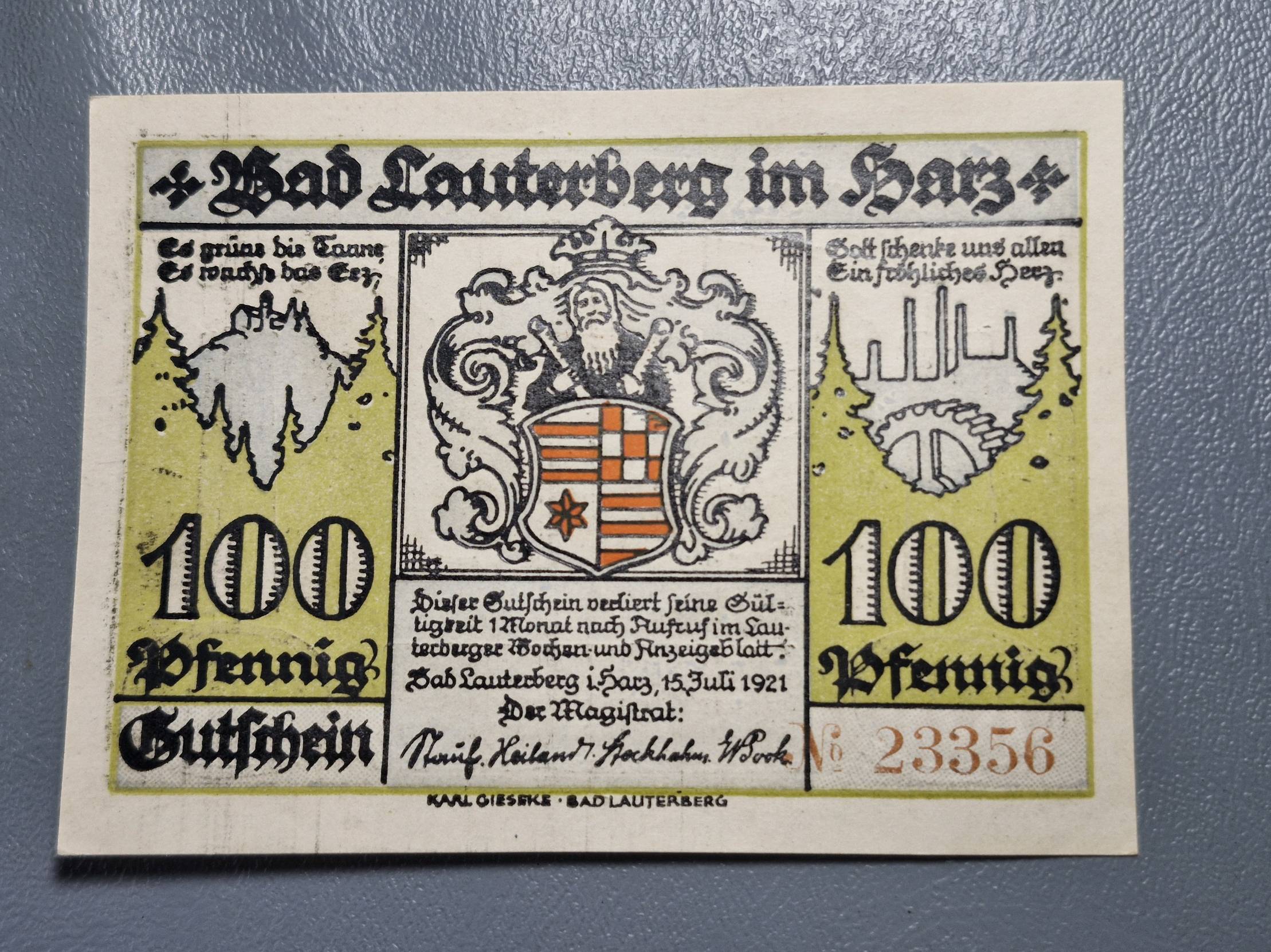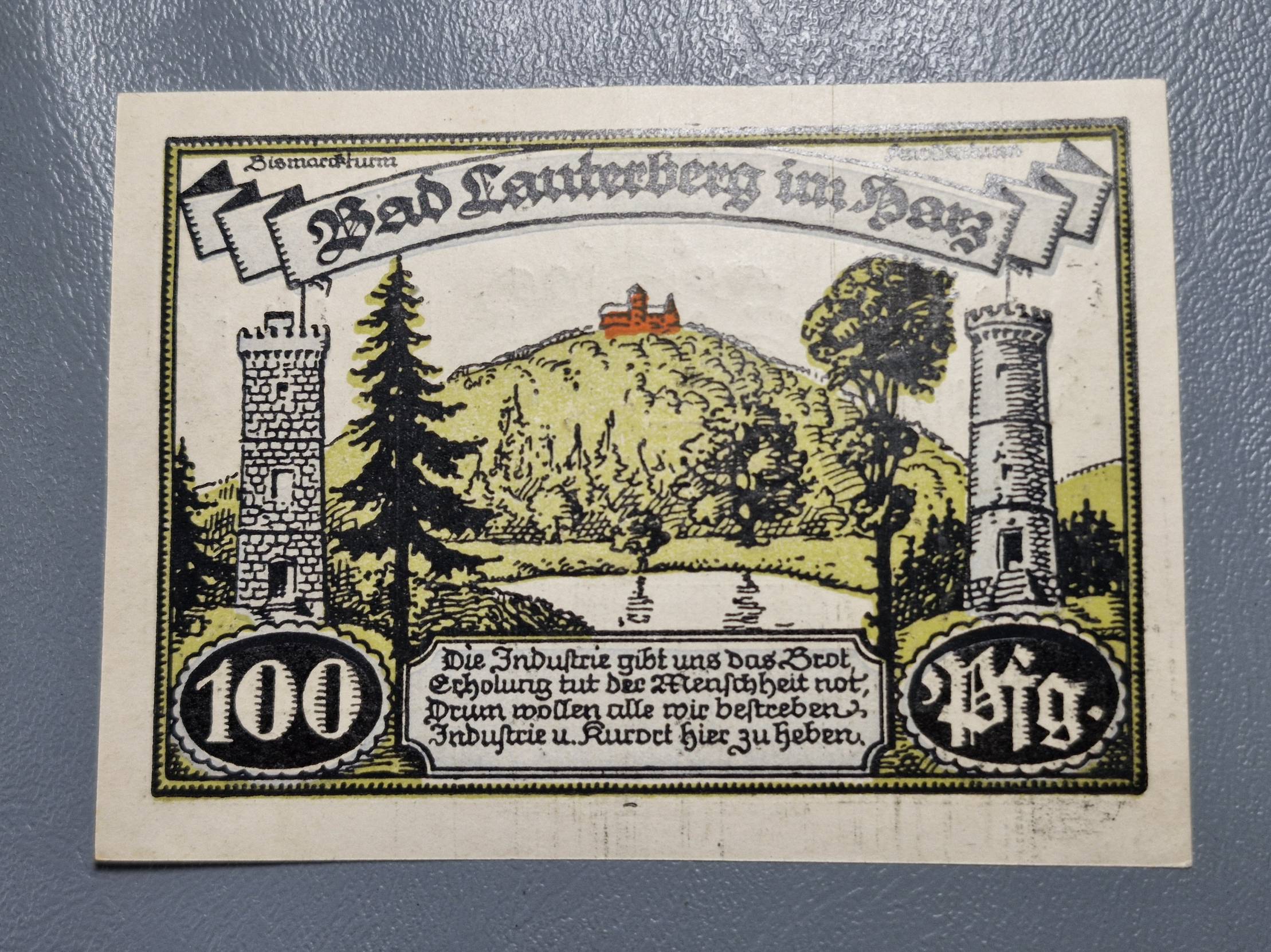 100 Pfennig 1921.07.15 Lauterberg Notgeld Vokietij