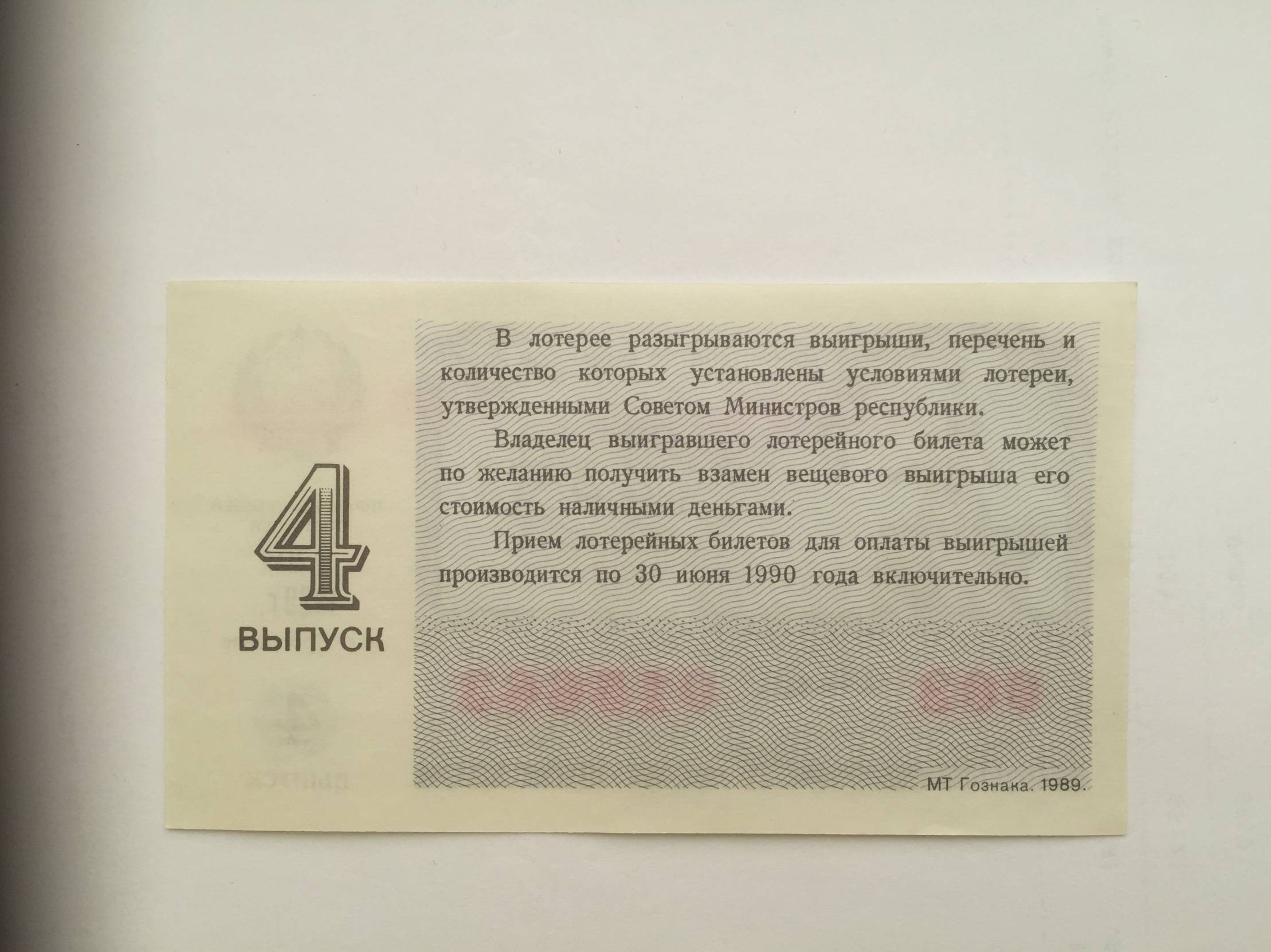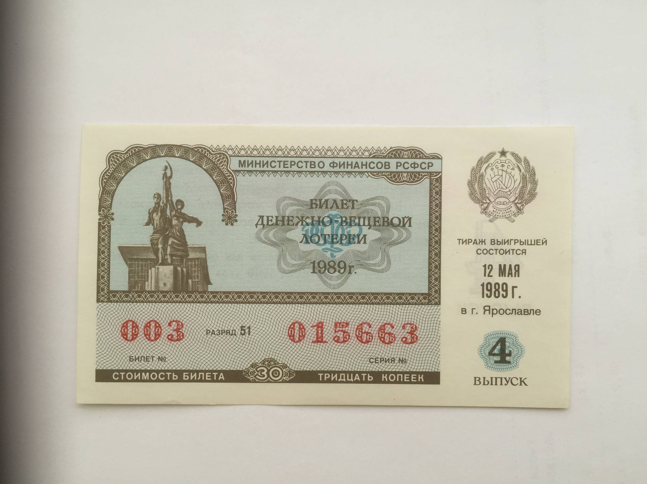 Rusija (Jaroslavlis) Loterijos bilietas 1989m.