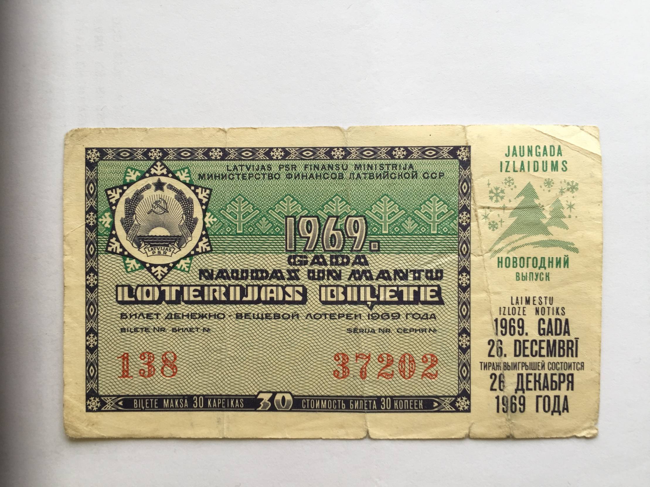 Latvija Naujametinė loterija 1969m.