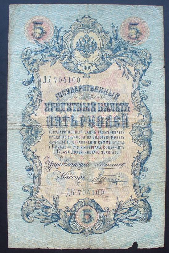 Rusija 1909 5 RUBLIAI P10a(26).....5696