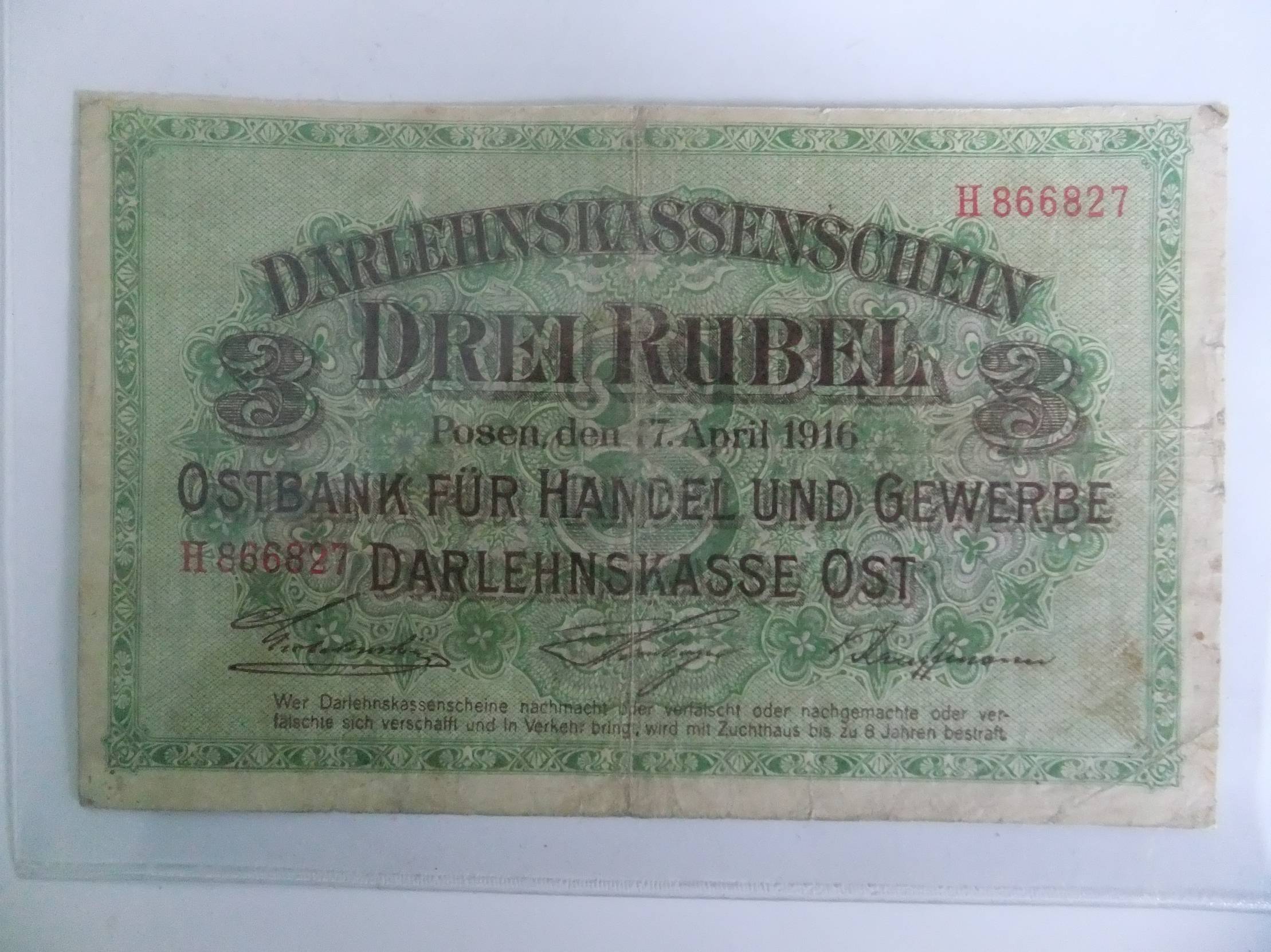 Lietuvos - 3ost rubliai Kaunas 1916m. nuo 1e.