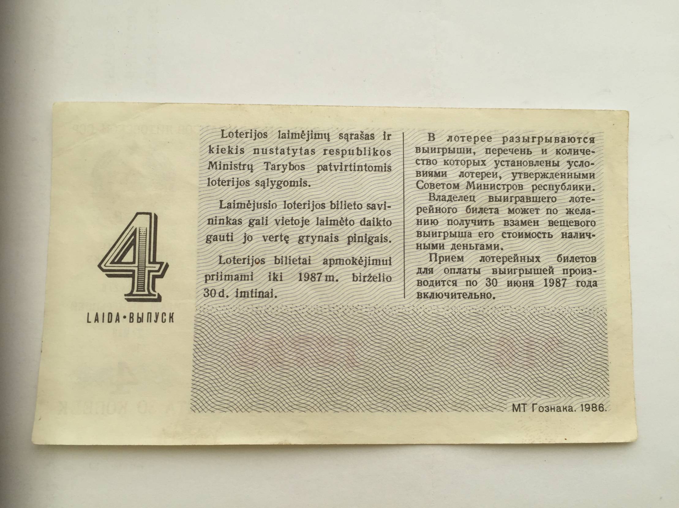 Lietuva Loterijos bil. 1986m.