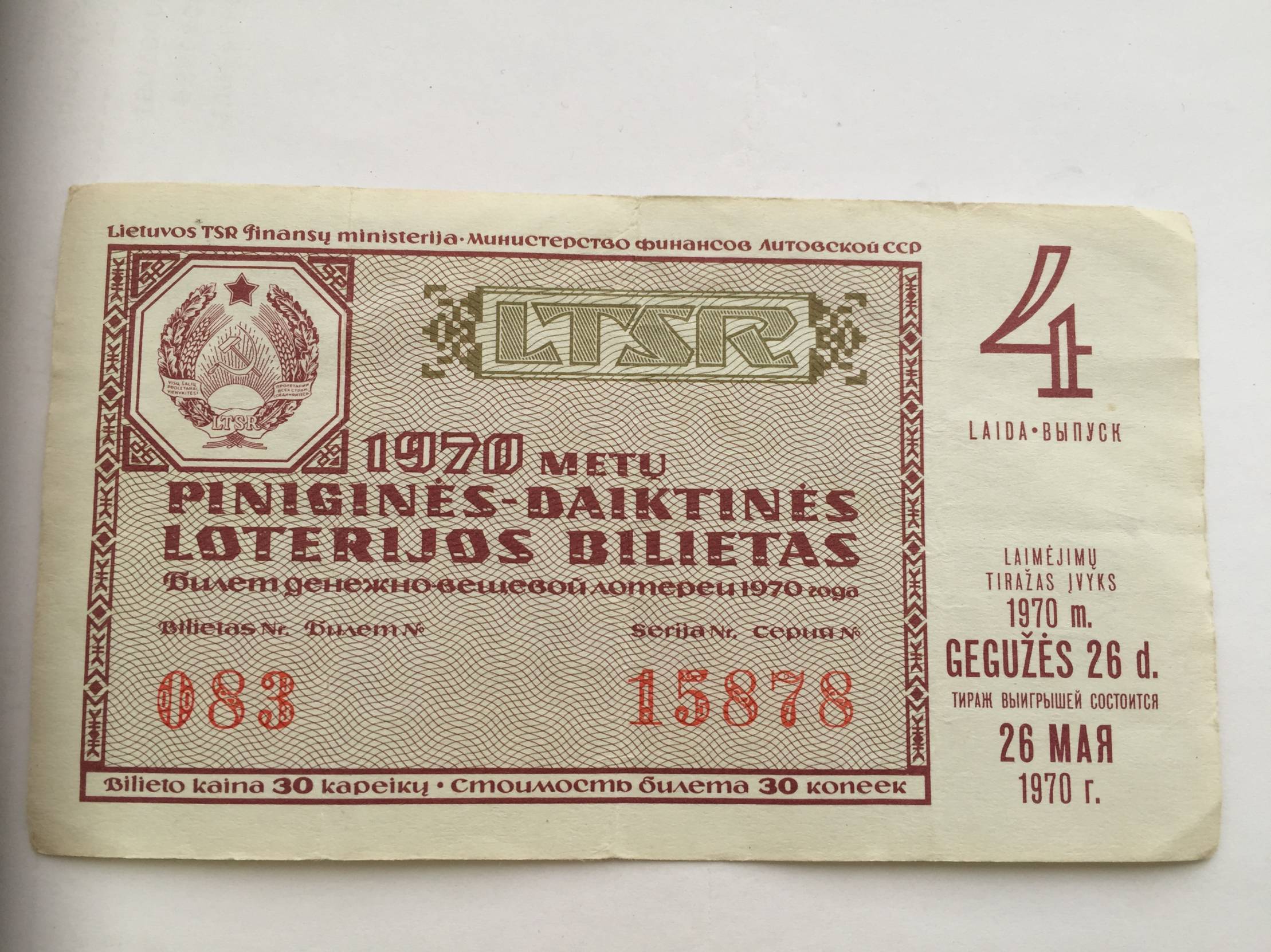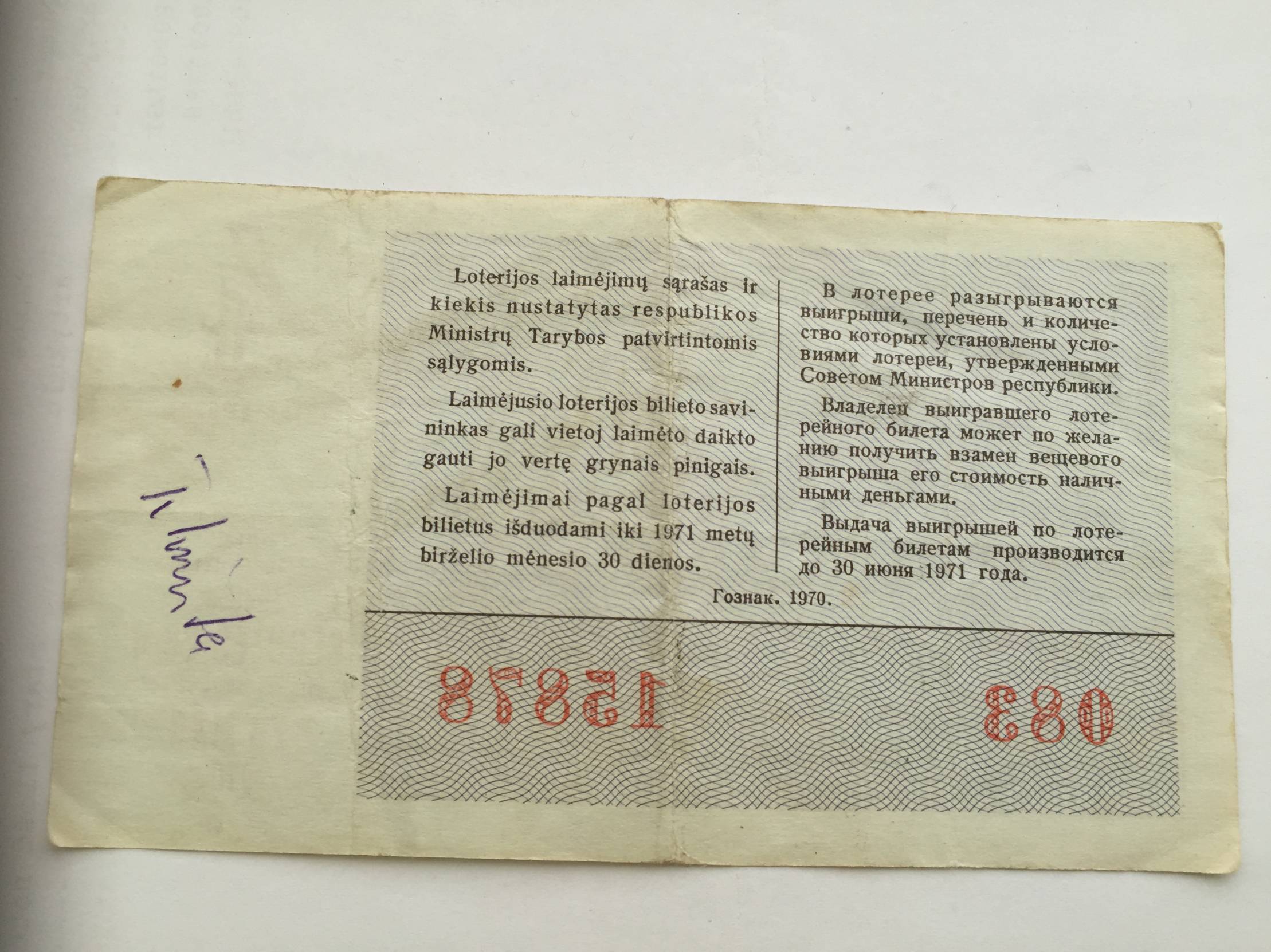 Lietuva Loterijos bil. 1970m.