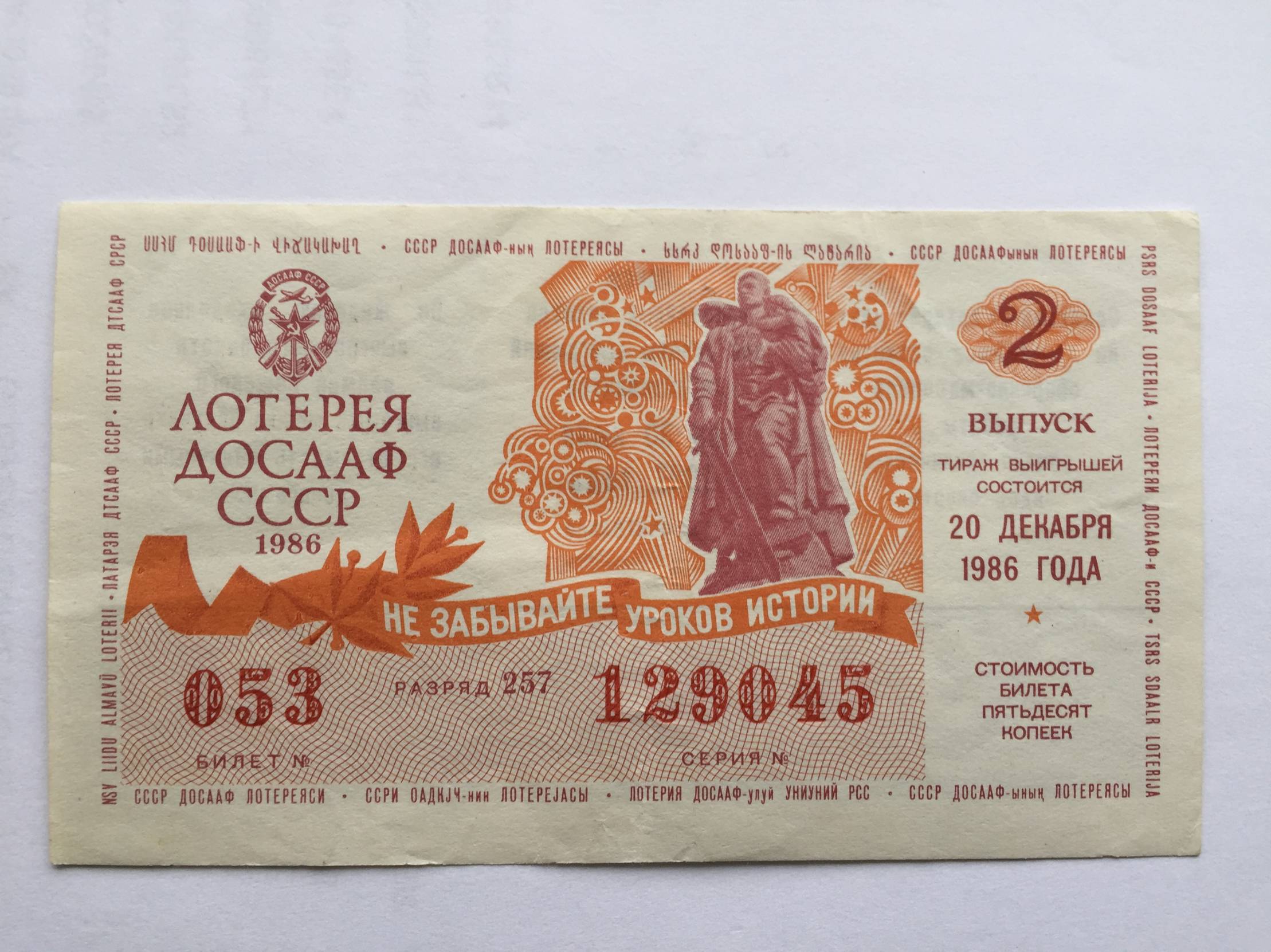 Rusija DOSAF Loterijos bilietas 1986m.
