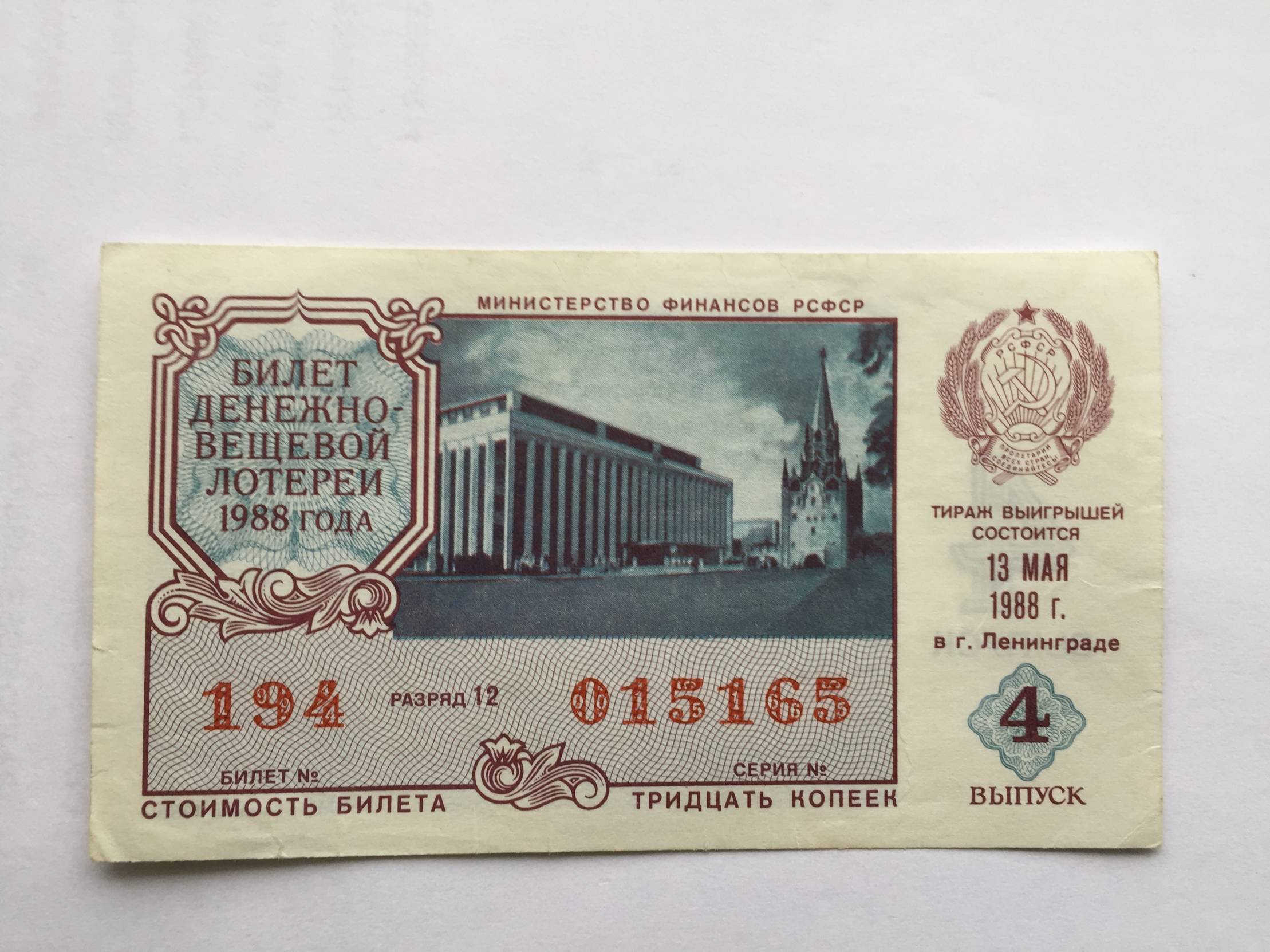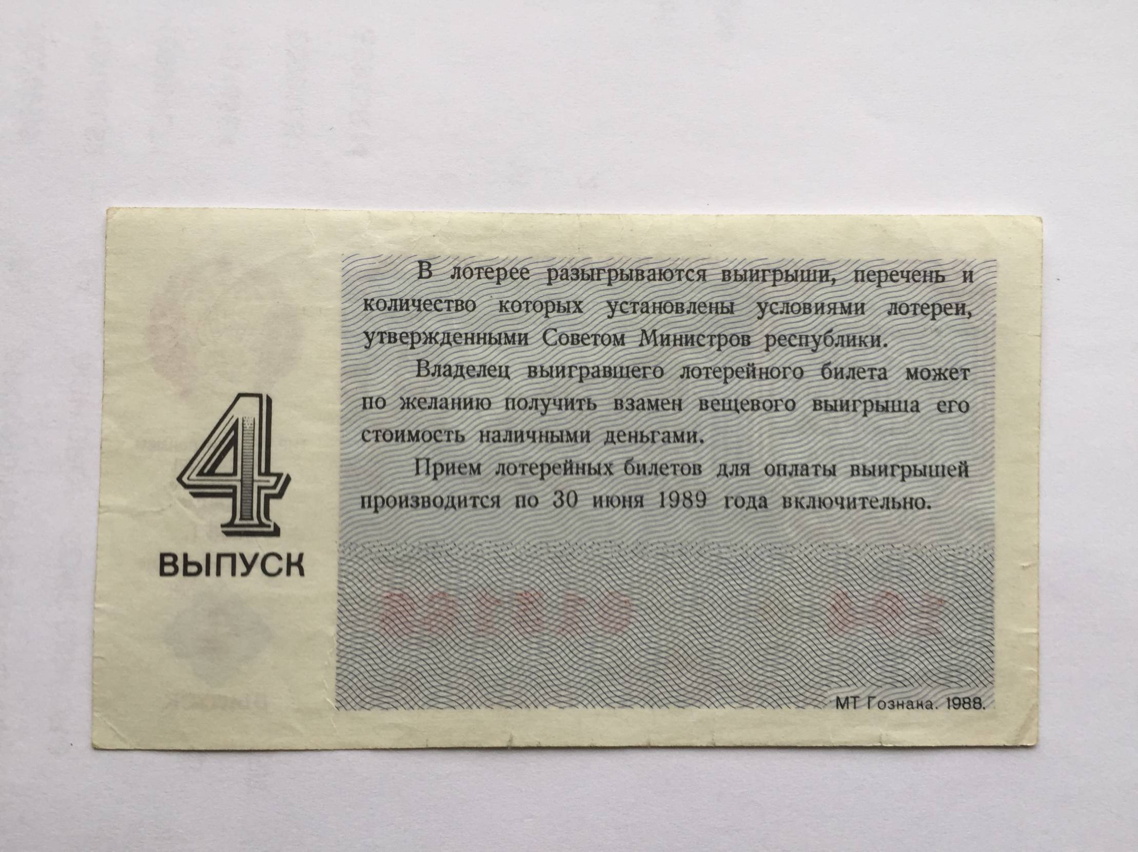 Rusija Loterijos bilietas Leningradas 1988m.