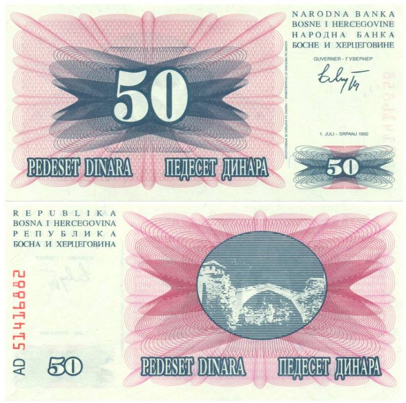 Bosnija ir Hercegovina 1992 50 DINARA UNC P12.5719