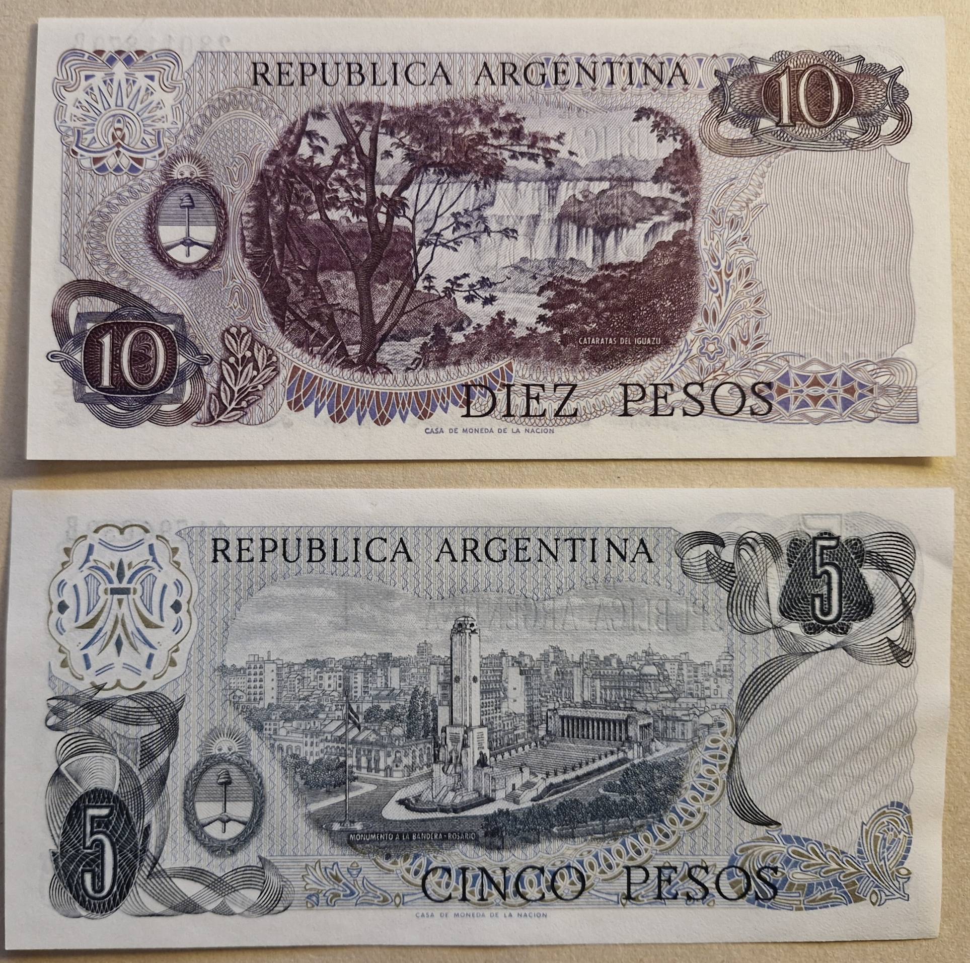 5 ir 10 Pesų UNC Argentina - Nuo 1 Eur