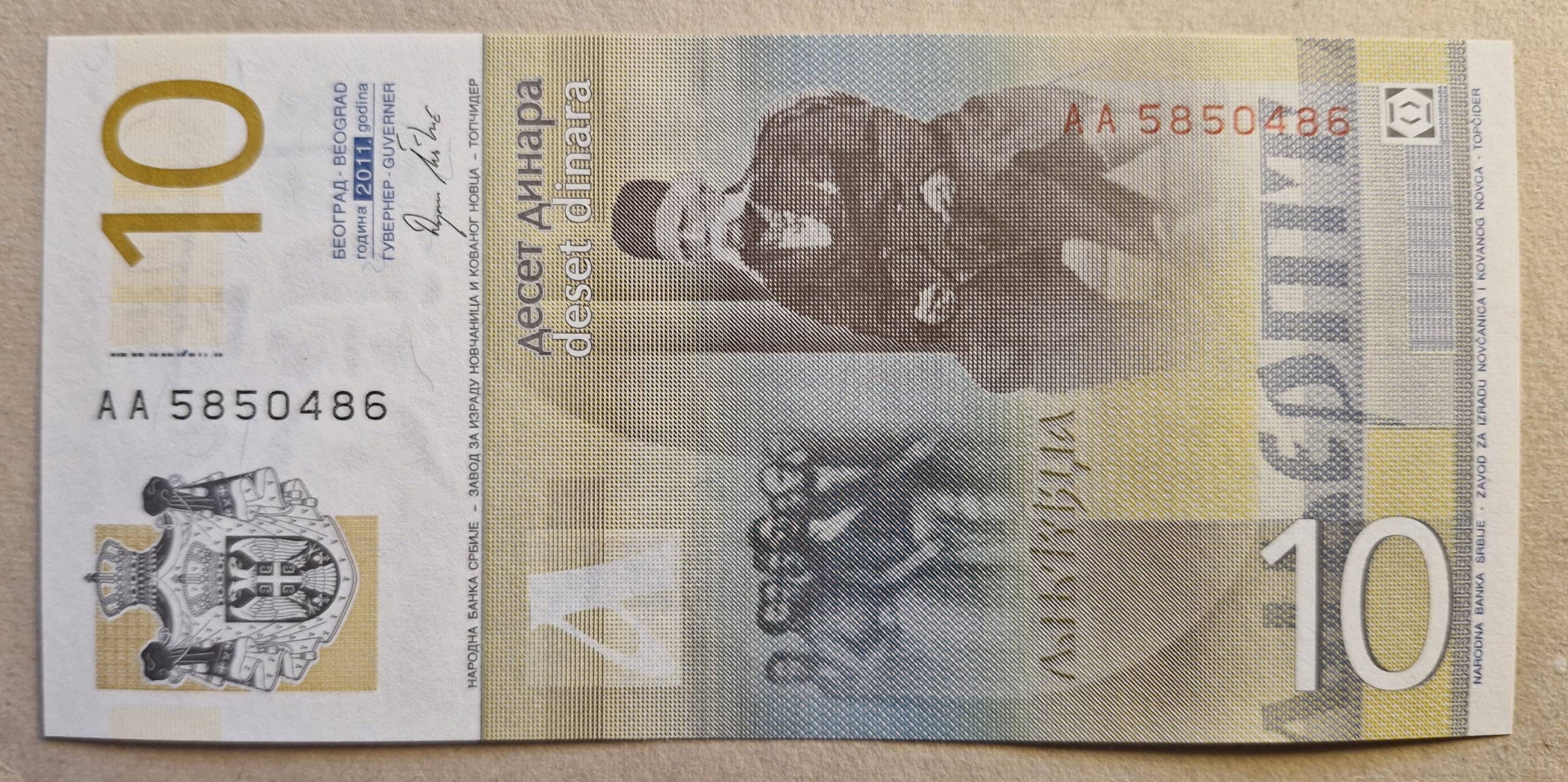 10 Dinarų 2011 m. UNC AA Ser Serbija - Nuo 1 Eur