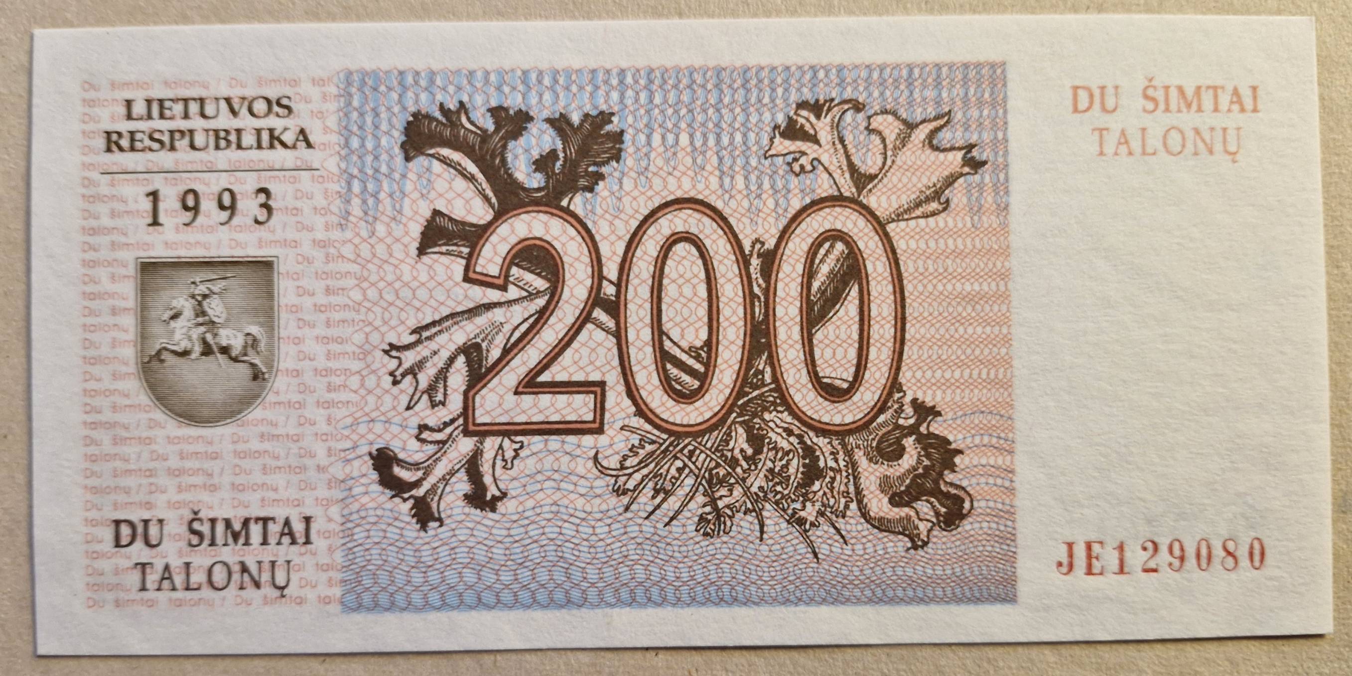 200 Talonų 1993 m. UNC Lietuva - Nuo 1 Eur