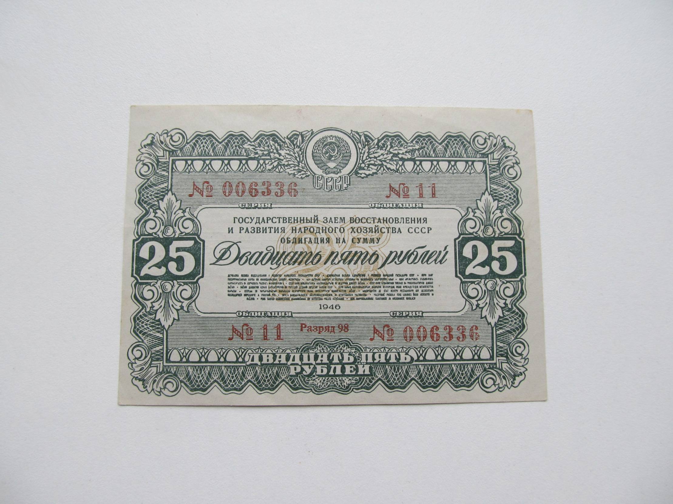Obligacija 25 rubliai , Cccp , 1946 .